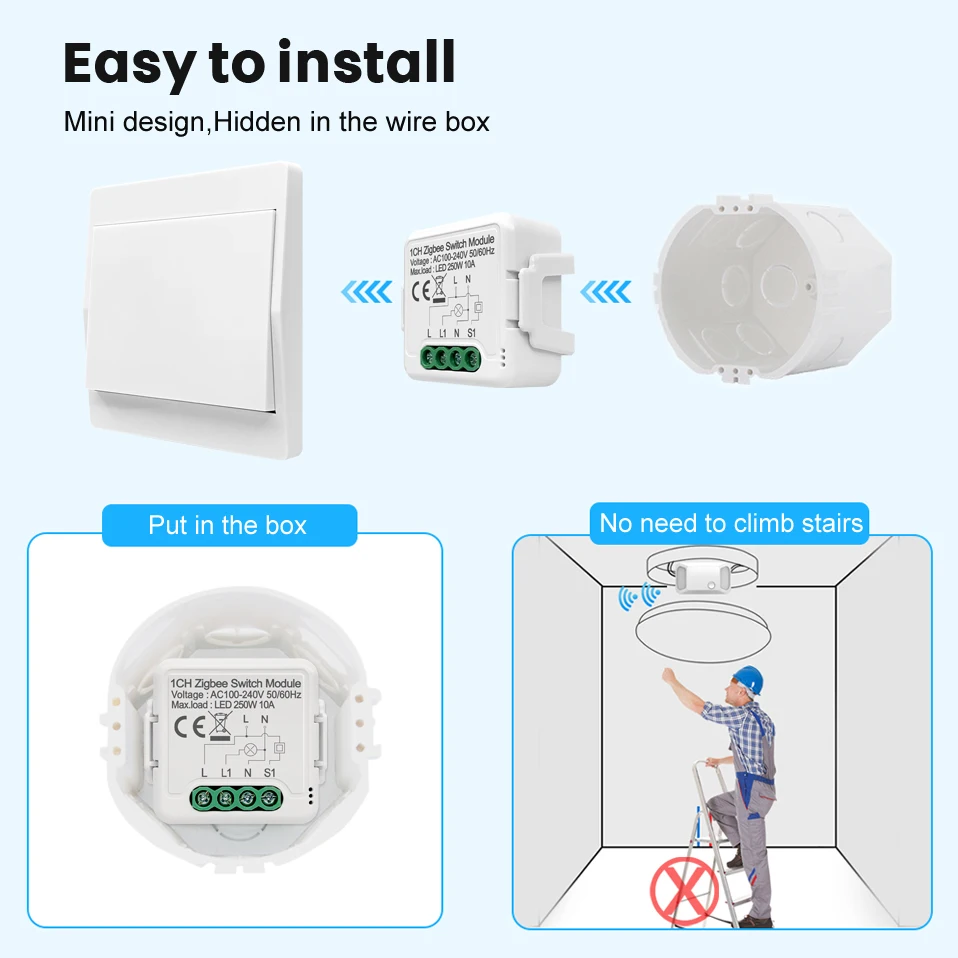 [Мини размер, легко установить]-Ультра мини размер тела может спрятаться в традиционной коробке переключения легко, умный ваш дом без изменения украшения. Также он прост в установке, отличный предмет для пользователя DIY. (Примечание: совместим с клавишами и сенсорным переключателем, но не совместим с переключателем сброса).
