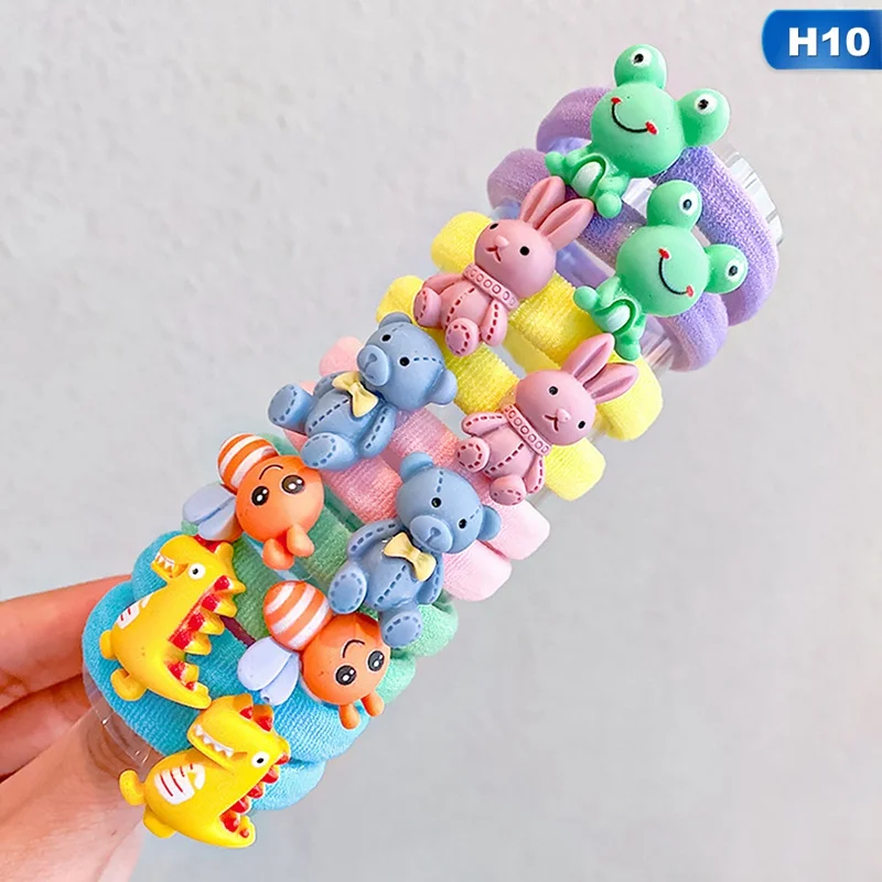 10 шт. милые детские эластичные резинки для волос с мультяшными жив...