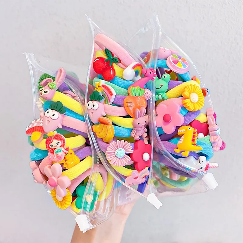 10 шт.компл. милые резинки для волос для девочек, резинка для волос с изображением животных и фруктов, эластичные резинки для волос, резинки для волос, Детские аксессуары для волос с изображением героев мультфильмов