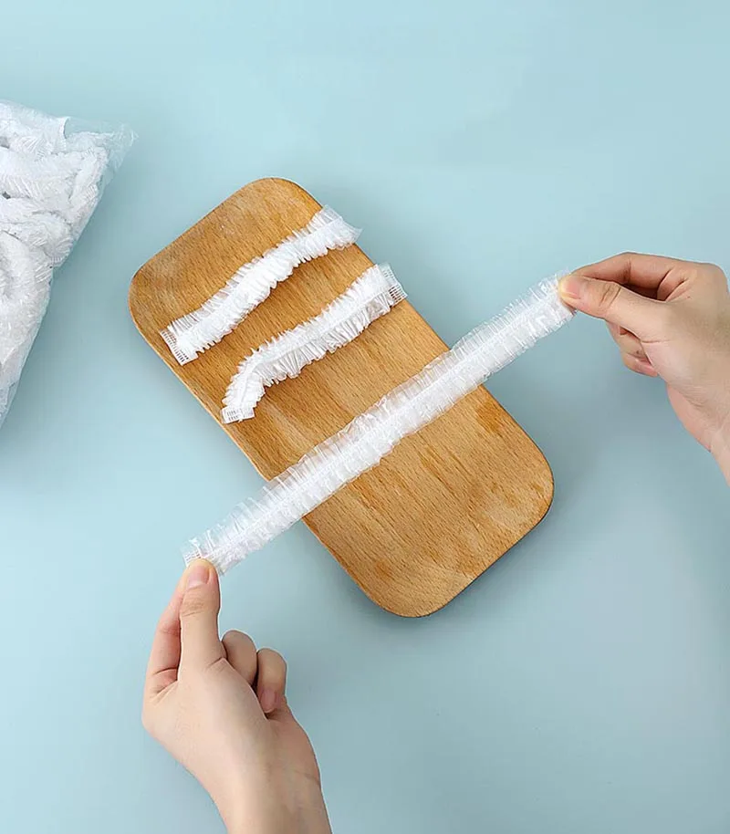 * Края каждого тщательно изготовленного прозрачного пищевого покрытия оснащены эластичной лентой с подходящей кривизной, которая может обернуть пластину без чрезмерного напряжения.