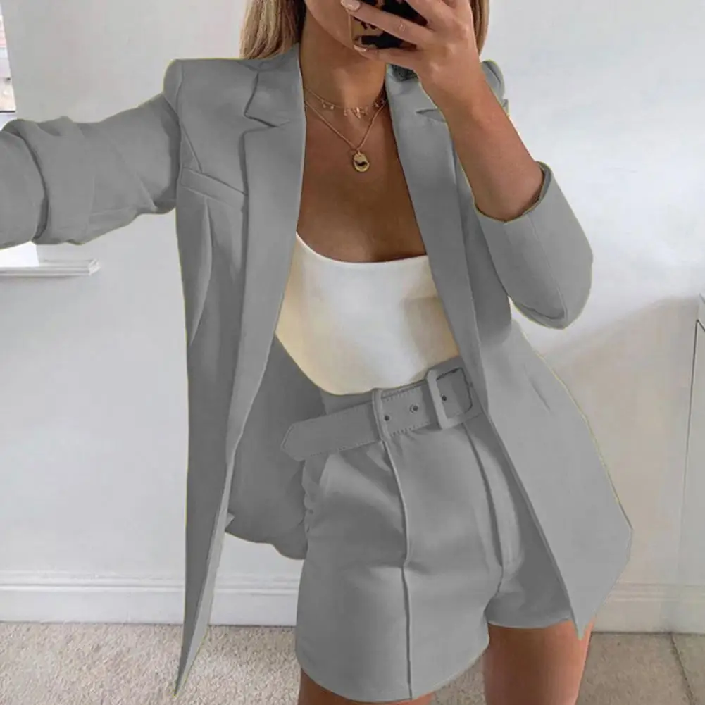 Новинка, Модный женский базовый Блейзер ярких цветов, брюки, приталенный костюм, куртка, блейзер, комплект, уличная одежда, Свободный Повседневный костюм, широкие шорты