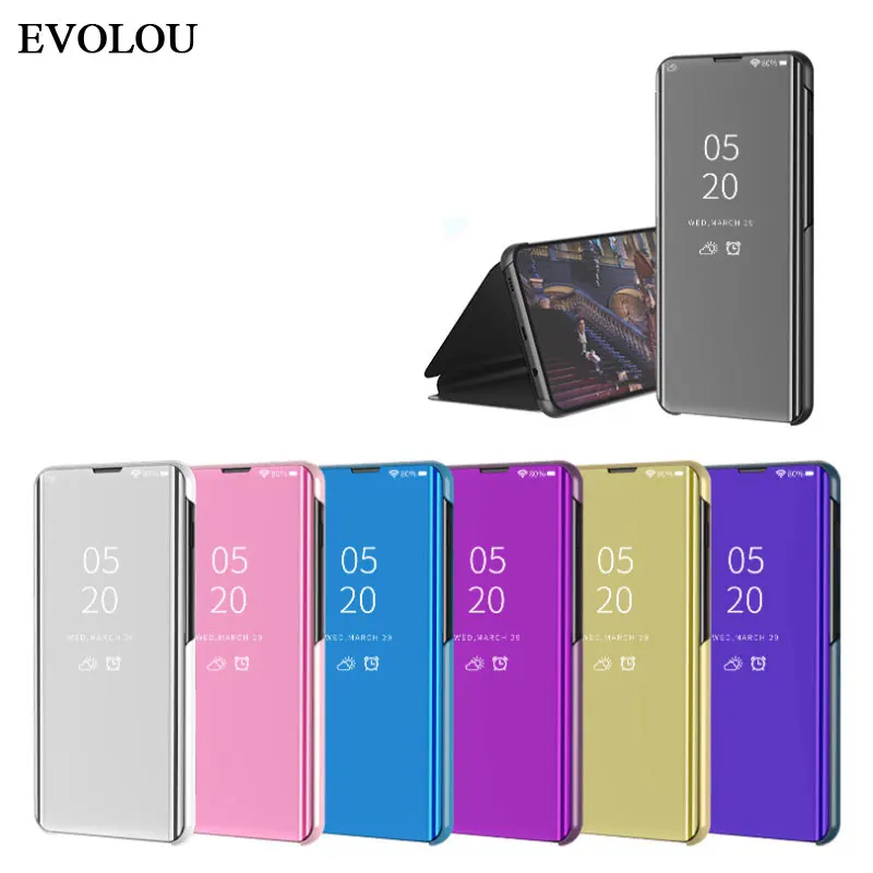 Зеркальный флип-чехол для Huawei P40 P20 P30 P10 Lite Pro Y7 Y6 Y9 ...