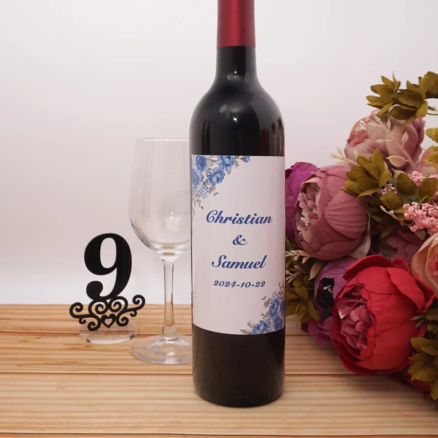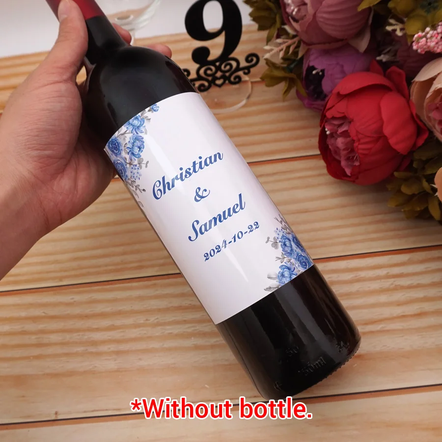20 шт Заказные персонализированные синие розы Стиль Свадебные винные этикетки церемония бутылки этикетки наклейки День Святого Валентина DIY вечерние украшения