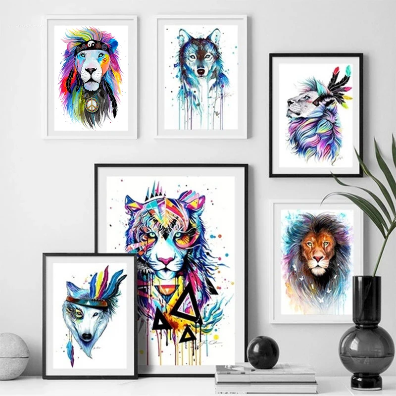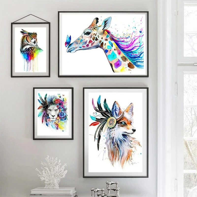 Жираф, Горилла, волк, лиса, Лев, фотообои, искусство, модульные картины для гостиной