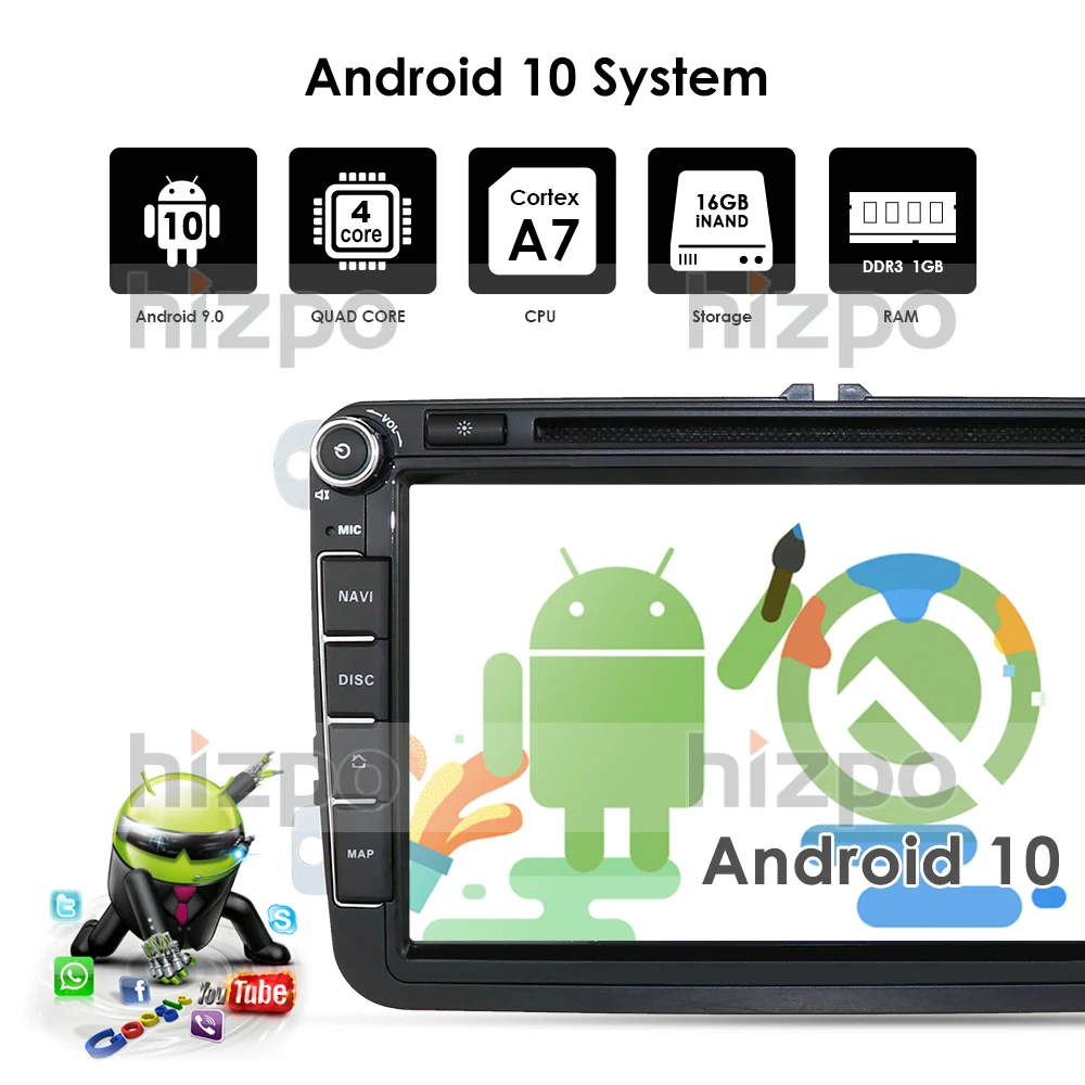 Автомобильный DVD-плеер 2DIN, Android 10, 8 дюймов, для VW POLO, GO...