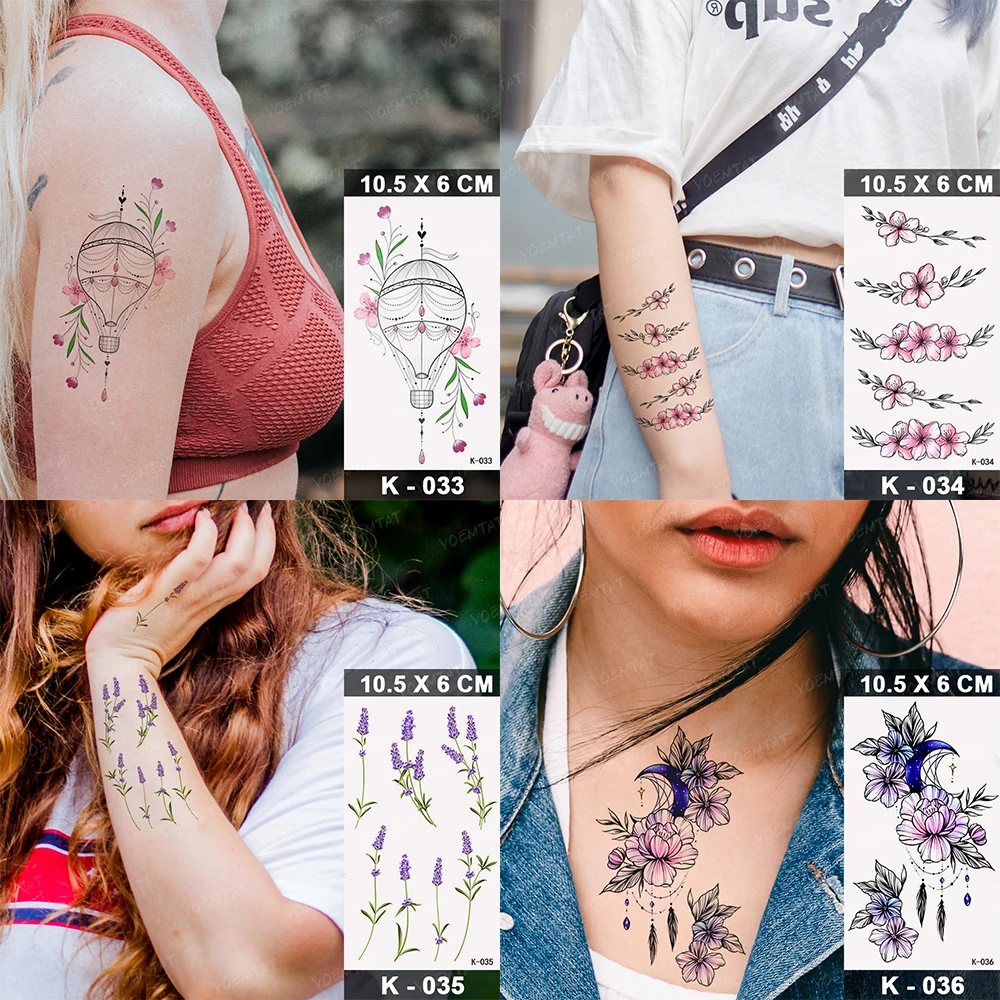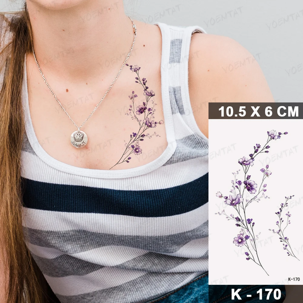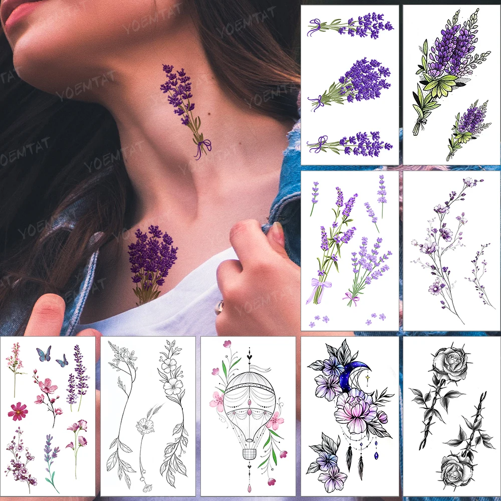 Водостойкая временная татуировка наклейка для женщин Цвет Лаванда Фиолетовый цветок палец рука поддельные татуировки для женщин мужчина ребенок флеш-тату