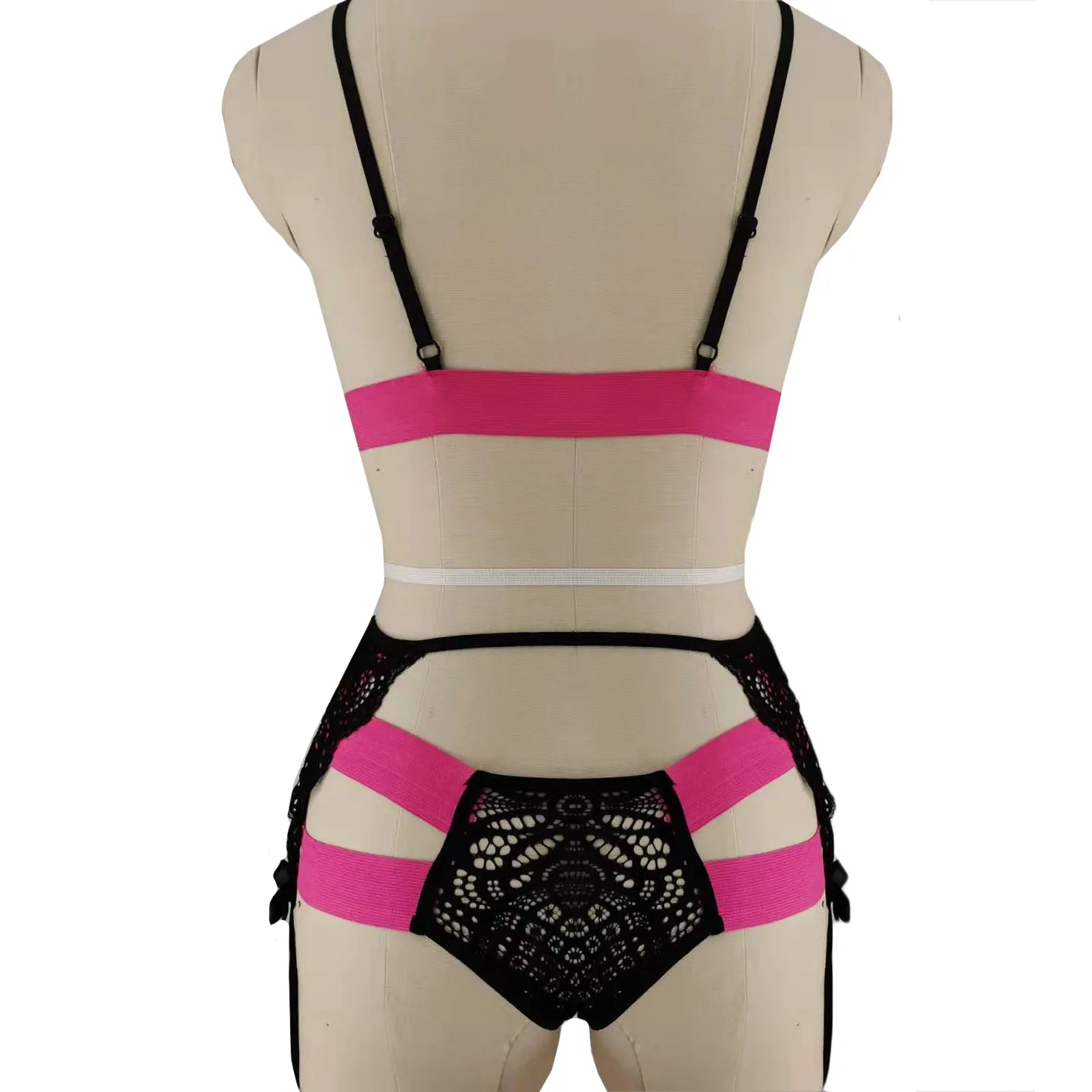 Горячее розовое нижнее белье чувственное женское сексуальное женское нижнее белье набор бюстгальтер пуш-ап пояс с подвязками нижнее белье женский Бралетт эротическое белье