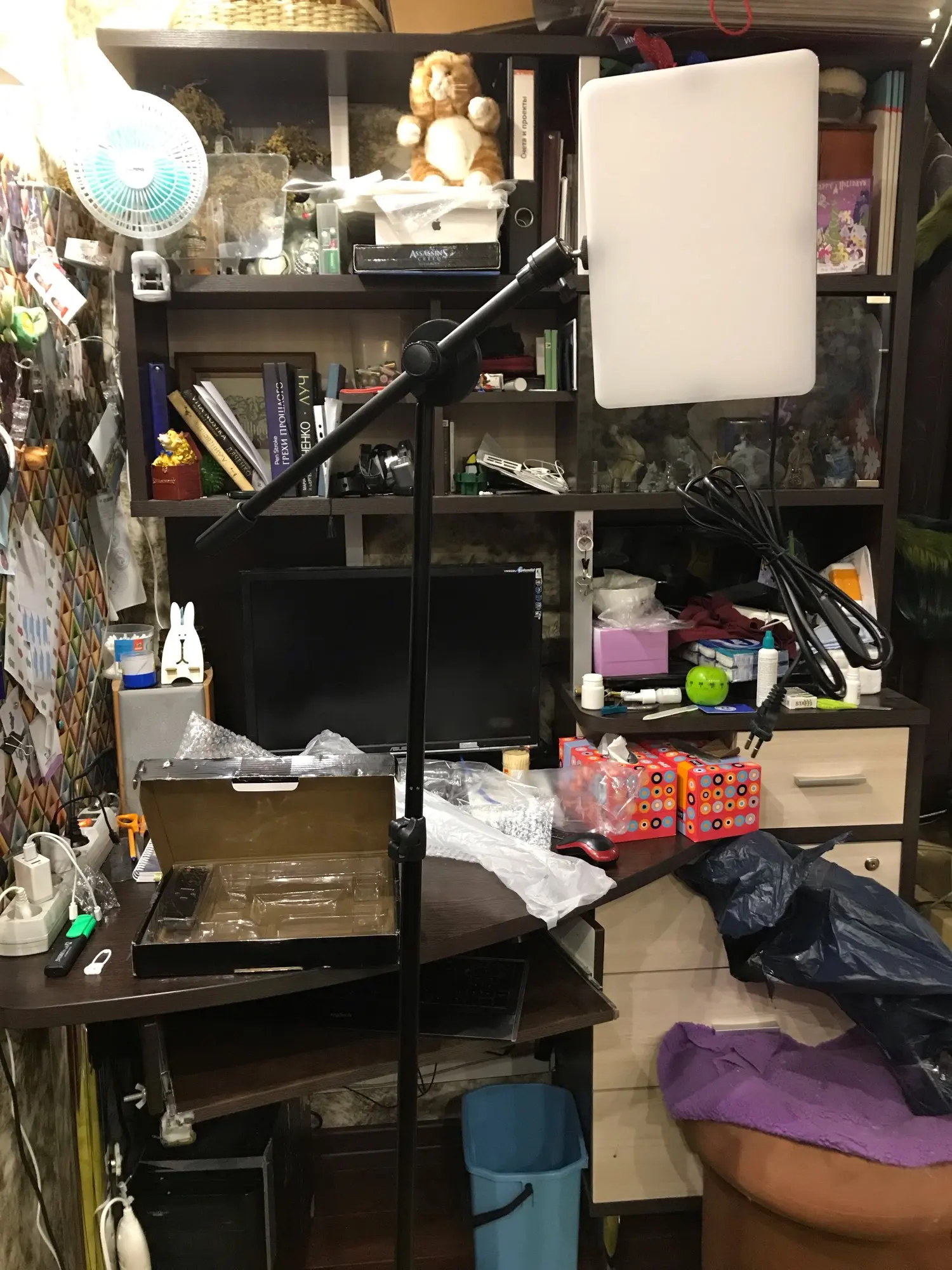 Товар полностью соответствует описанию. Доставка в Болгарию - быстрая. Продавец - молодец, очень ответственный, быстро и по делу реагировал на мои обращения. Заказ упакован в две отдельные коробки: со штативом и комплектом, содержащем светодиодную лампу + пульт + батарейки + креплением лампы к штативу. Все работает отлично: регулируется свет, цветовая температура - от теплого к холодному. На пульте предусмотрена кнопка "ночь" для перехода в минимальный режим освещения. Штатив очень легок, однако при этом - очень устойчив. Вся конструкция держится на полу надежно, что актуально для нашей семьи, где есть активно бегающие собака и кошки. Такая лампа - отличное подспорье для тех, кто делает ремонт, занимается творчеством и так далее. На все случаи жизни. Очень довольна товаром. Возможно, куплю вторую. Рекомендую продавца и эту лампу! Спасибо!