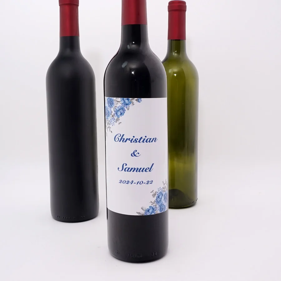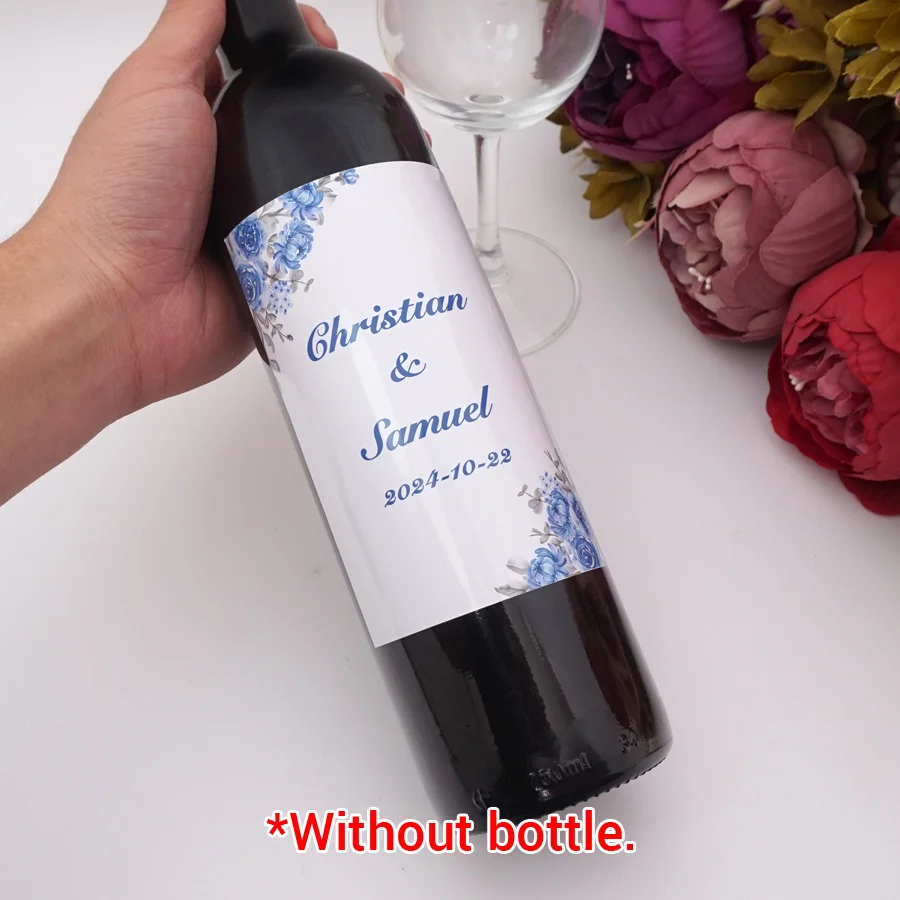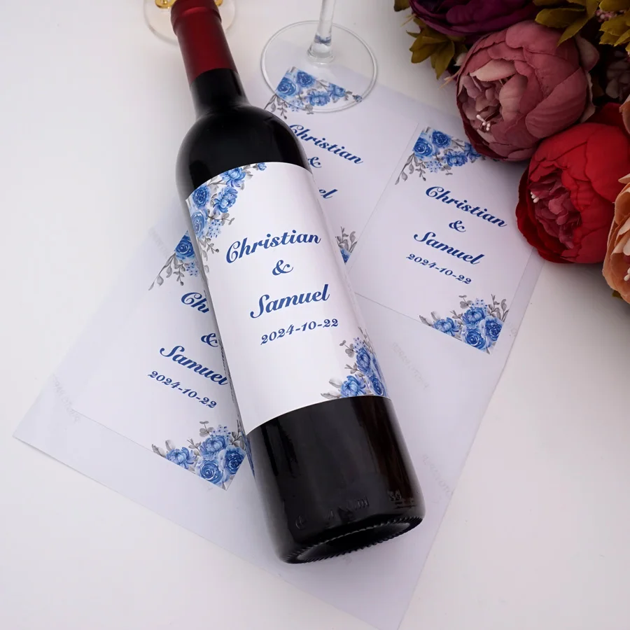 Синие цветы, персонализированная декоративная клейкая вечерние йка для винных бутылок