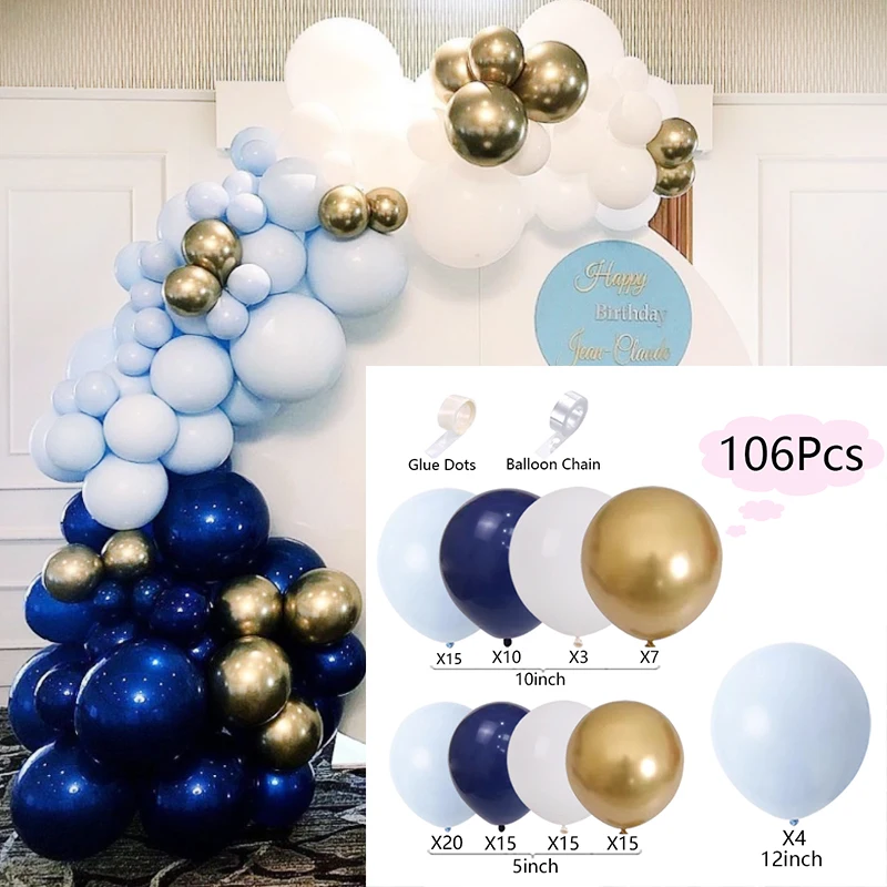 100 шт. Арочные шары набор синий, белый и золотой воздушный шар гирлянда ребенок крещение душ свадьба день рождения украшение из воздушных шаров