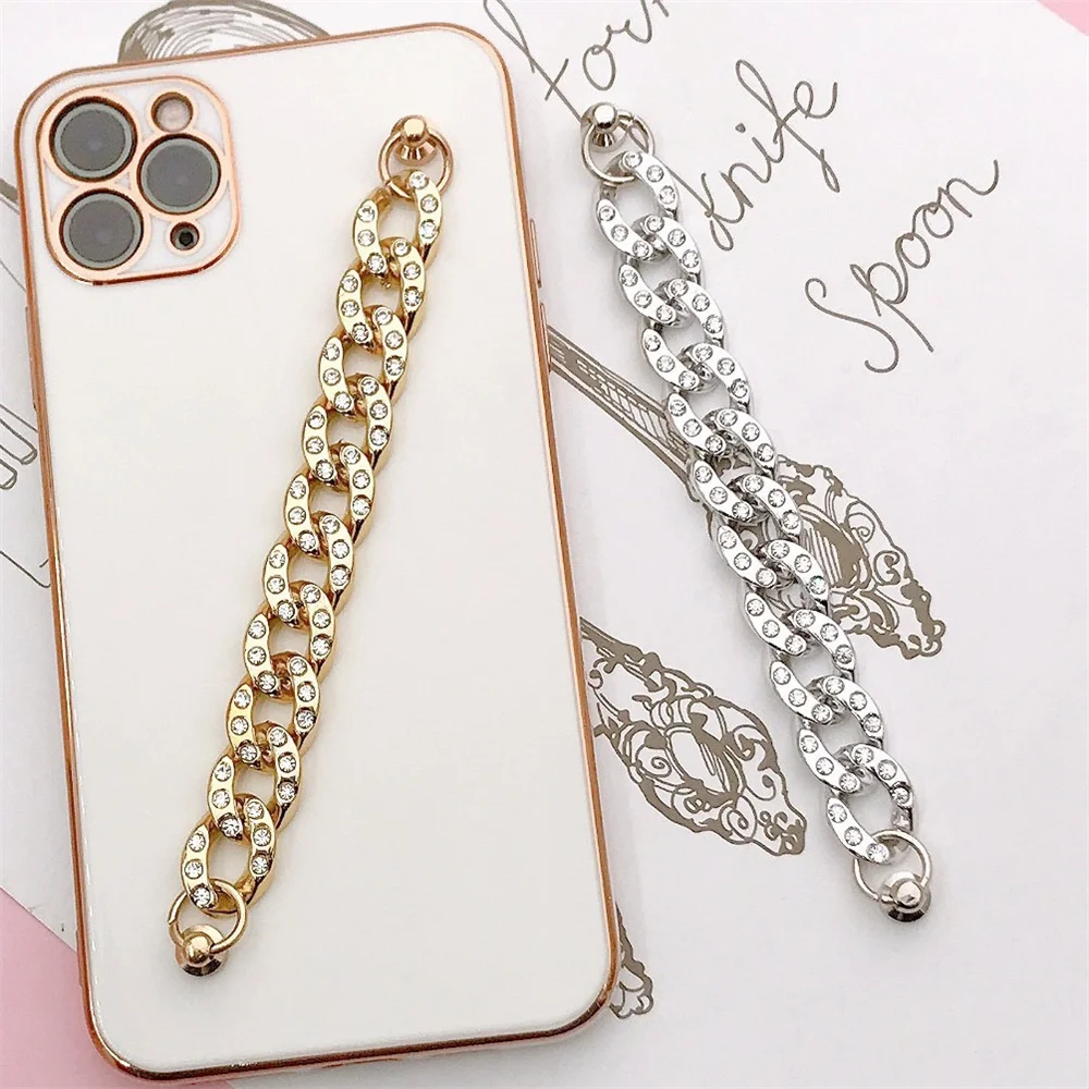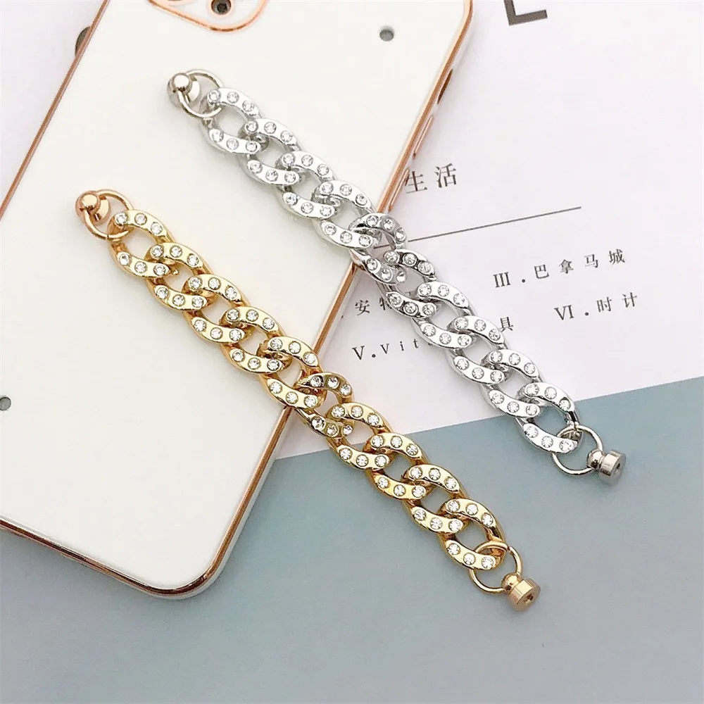 Тип товара: DIY мобильный телефон Чехол ювелирные изделия аксессуары Материал: металл, стразы Длина: 13,6 см Узор: Бриллиантовая цепочка Цвет: золотой, серебряный Посылка включает в себя: 1x мобильный телефон ремешок
