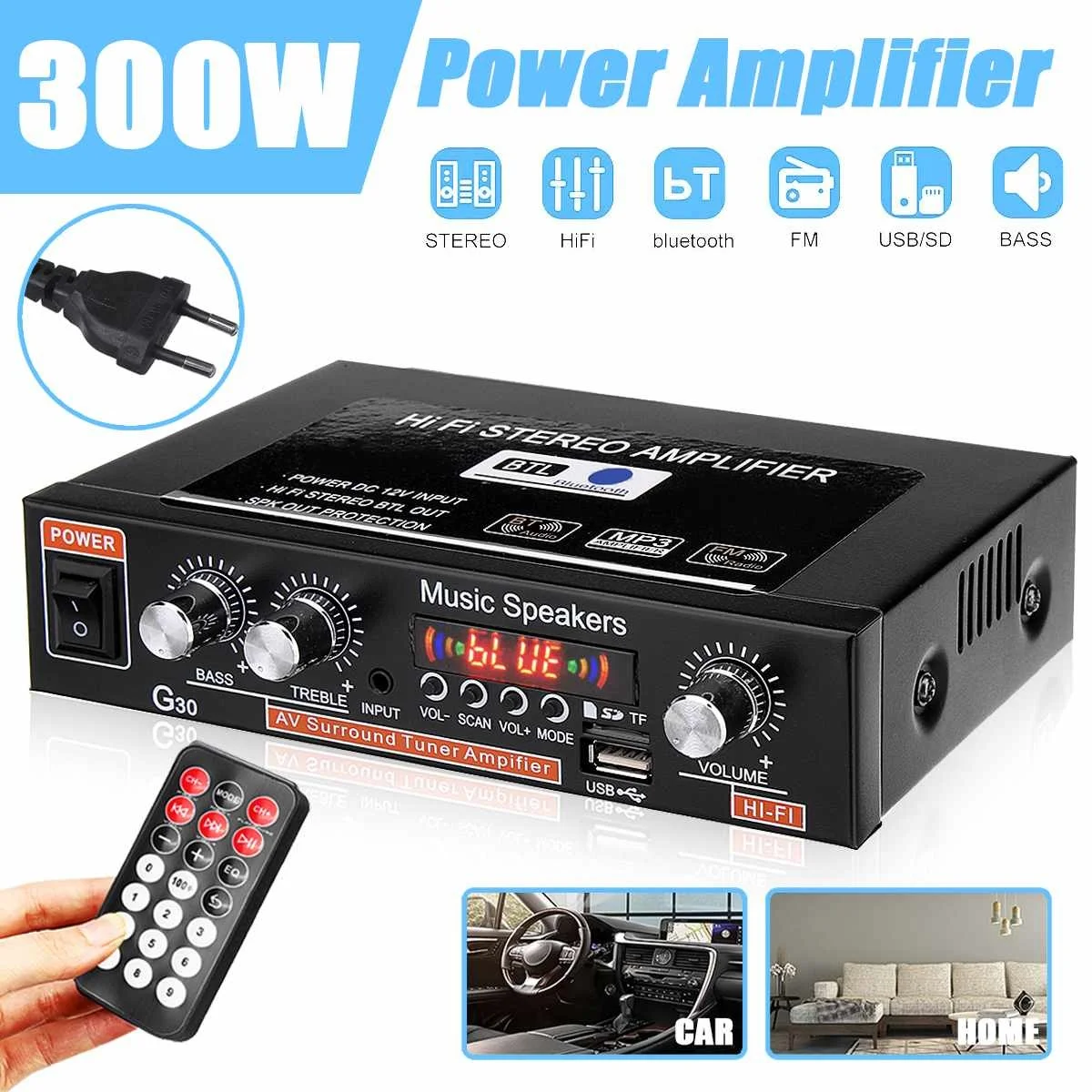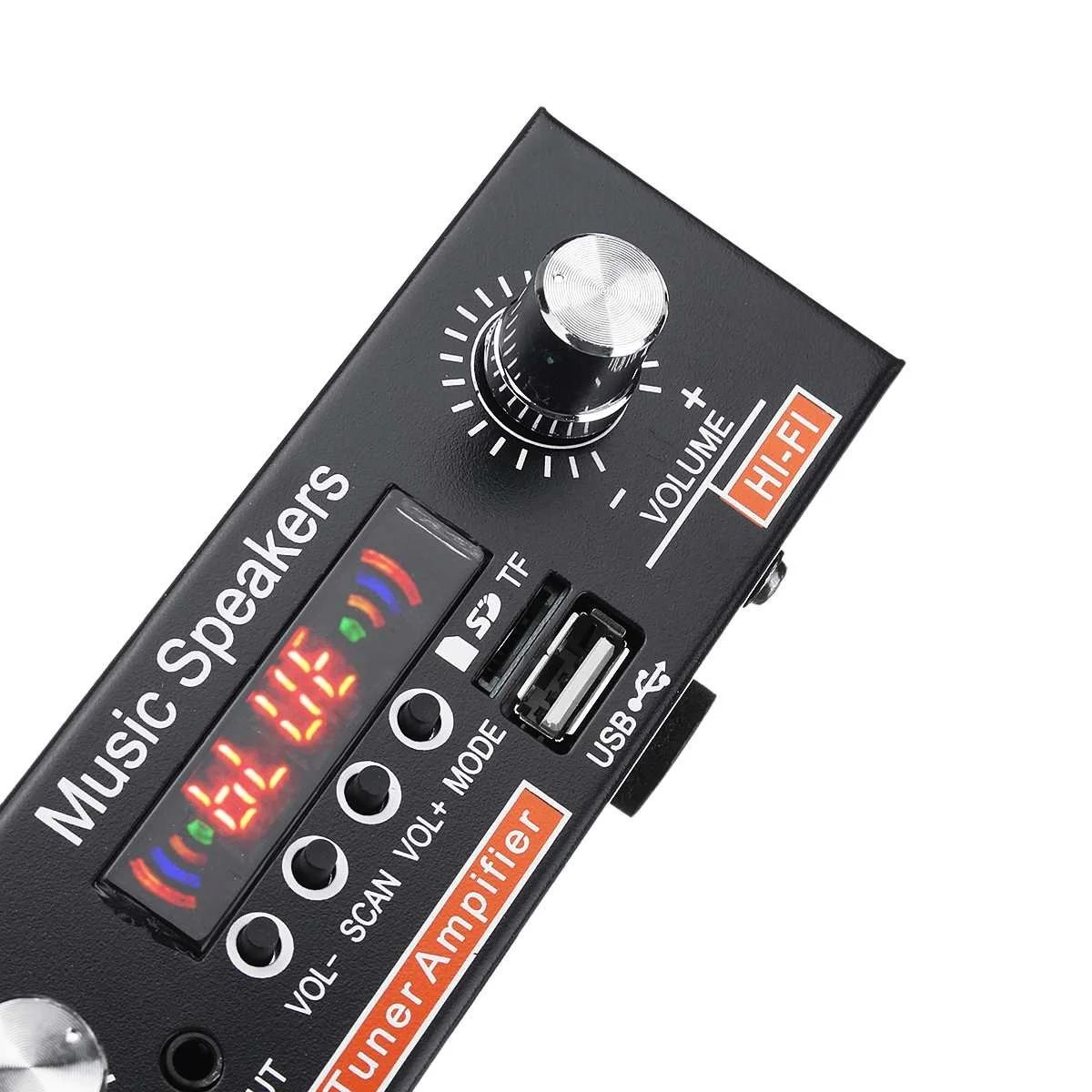 Особенности:-Мини HIFI Цифровой bluetooth аудио усилитель мощности.-TF карта, AUX, U диск, MP3 формат воспроизведения, поддержка bluetooth беспроводного подключения.-Поддерживает fm-стерео радио.-С высокими частотами, басами и регулятором громкости, очень прост в использовании.-Низкое Искажение обеспечивает более четкий, сильный и мощный звук.-Два выхода основного канала.-С функцией дистанционного управления.-Питание постоянного/переменного тока, подходит для дома или вашего автомобиля.-Модернизированная Высокая мощность 90 Вт + 90 Вт-Он может автоматически переключать напряжение-Малый вес, светильник