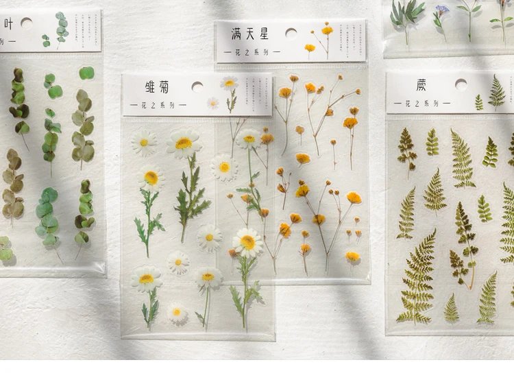 Прозрачные декоративные наклейки, цветы, листья, растения, клевер, 12 видов конструкций натуральный, японский, наклейки со словами
