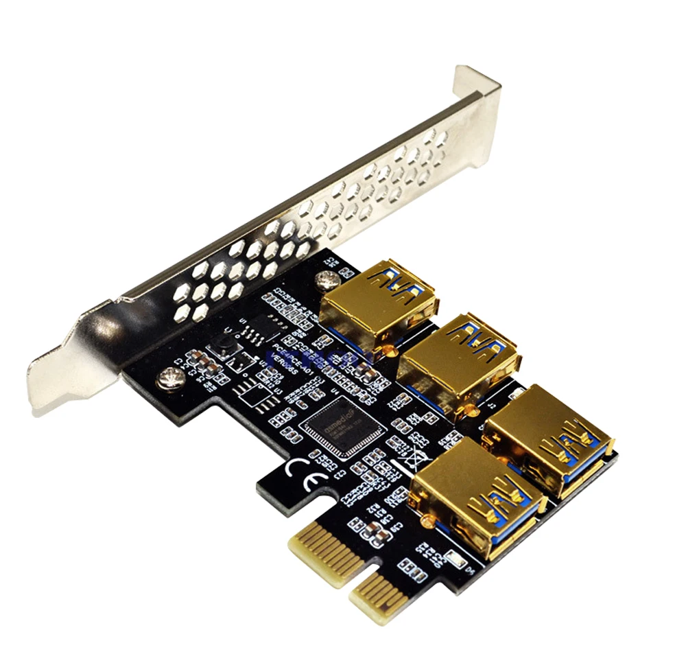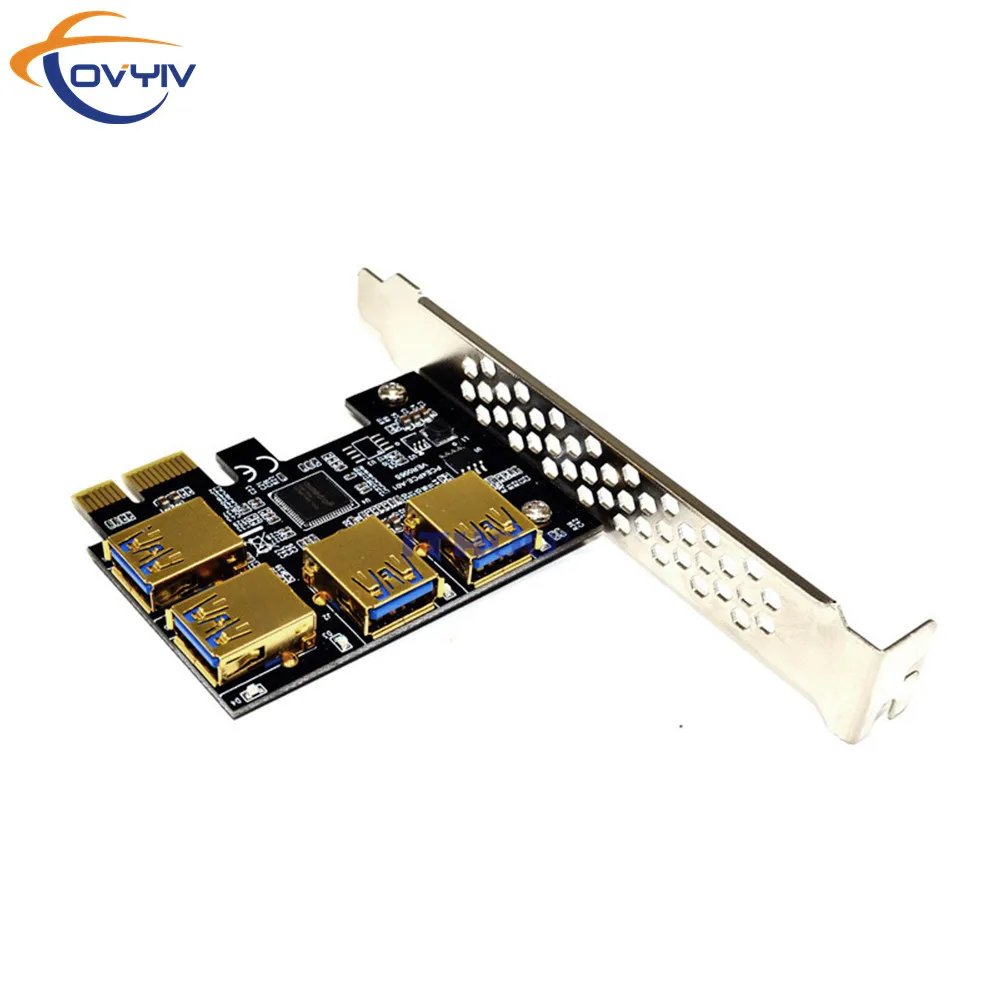 5 шт. COVYIV золотой 1 до 4 PCIE PCI-E Riser Card USB 3,0 мультипликатор Hub X16 PCI Express 1X 16X адаптер для BTC ETH Mining Miner