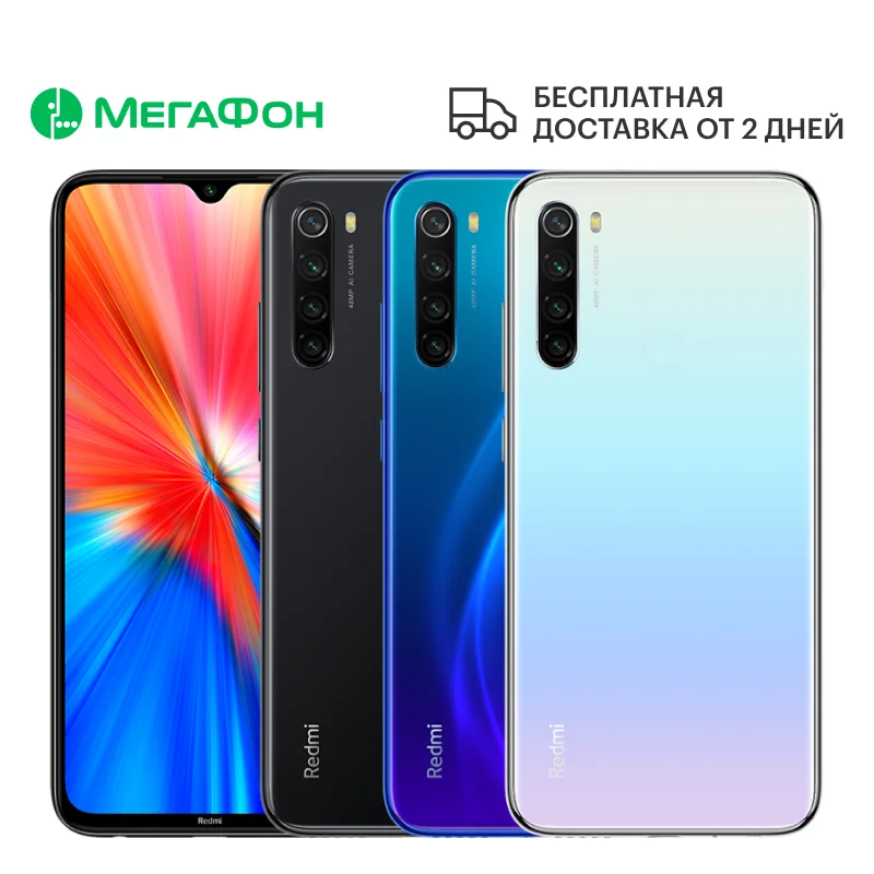 Смартфон Xiaomi Redmi Note 8 (2021) 4128GB Ростест, доставка, новый официальная гарантия, МегаФон