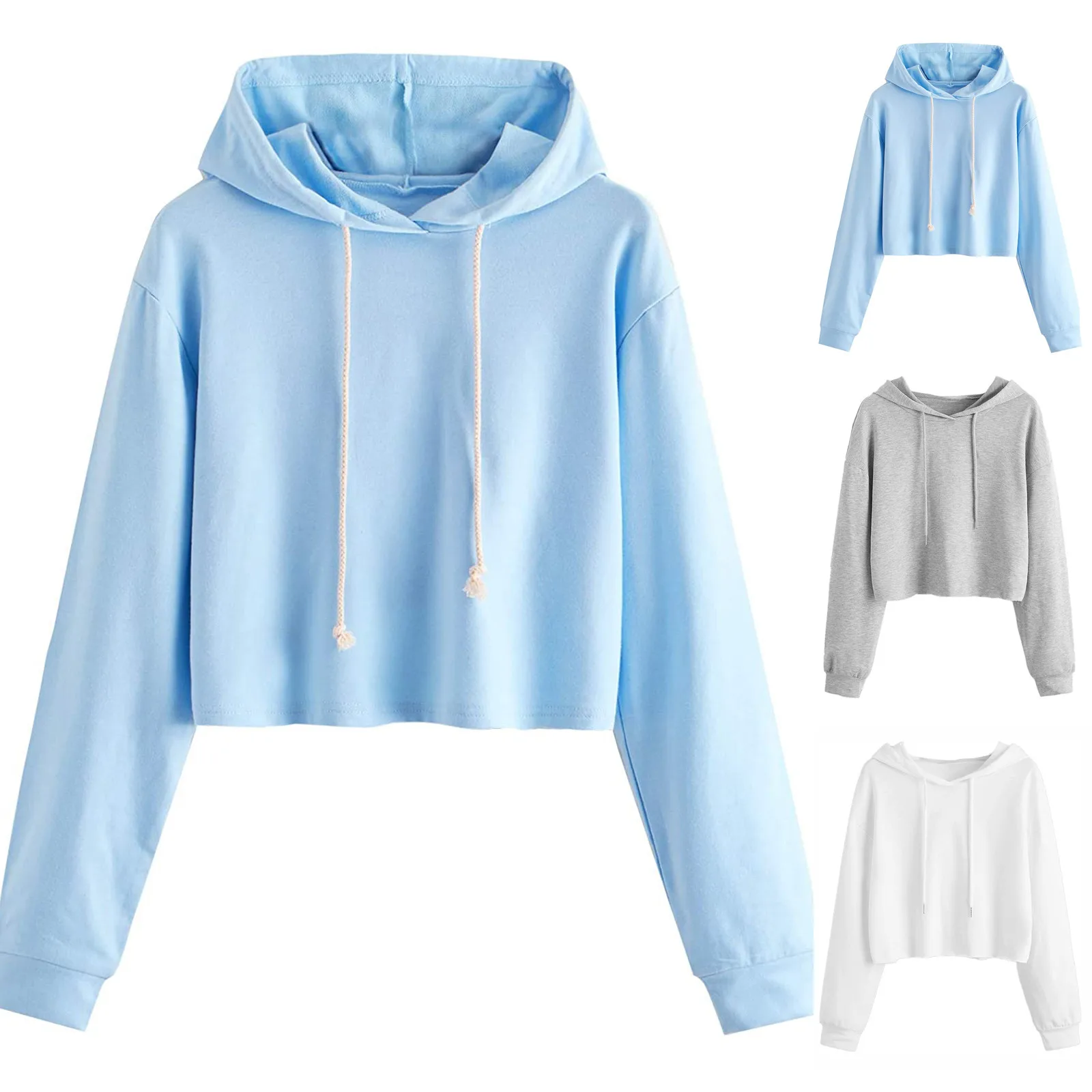 Однотонные женские толстовки с длинным рукавом, свитшоты на шнуровке, кроп-топ, толстовка, пуловер, свитшот, блузка, белый, серый, синий, Moletom
