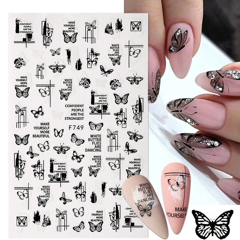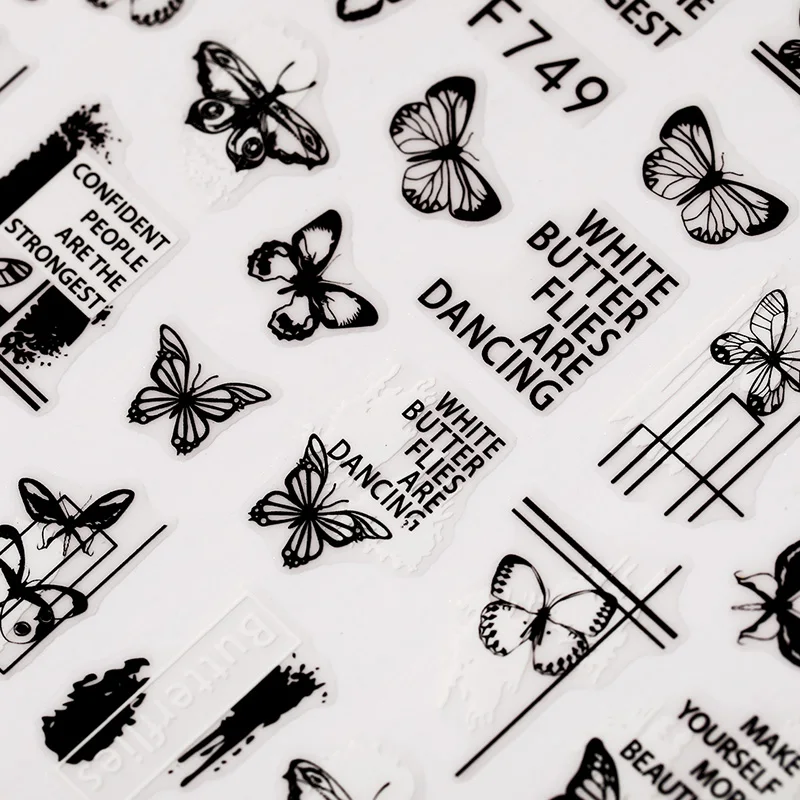 1 шт. черно-белая 3d-наклейка для ногтей с рисунком бабочки цветок ...