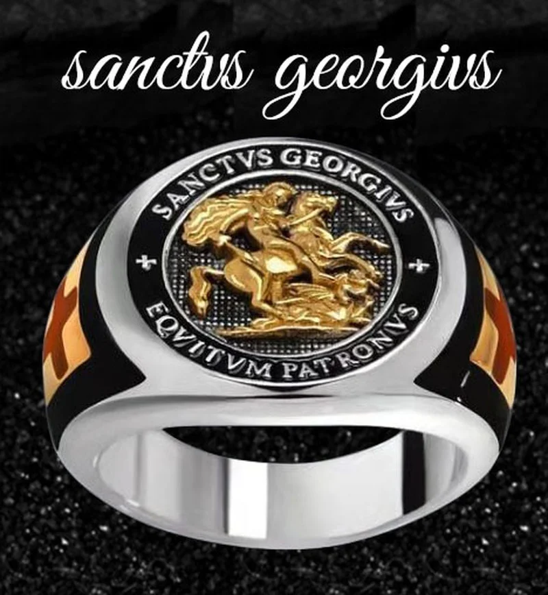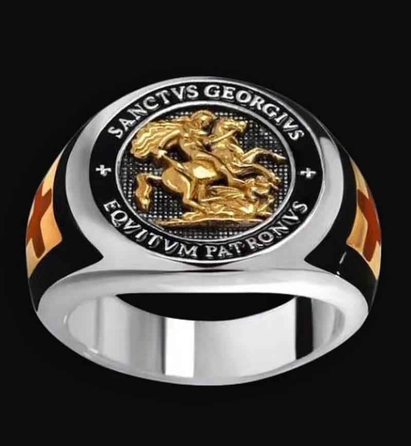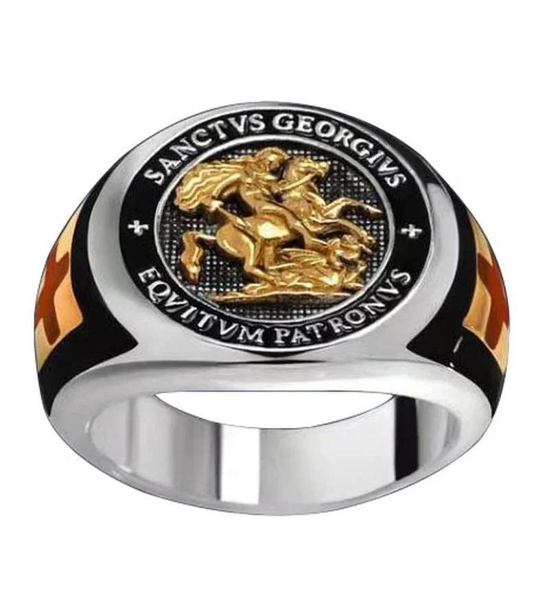 Мужское кольцо с крестом дракона, религиозное кольцо в стиле Святой Джордж, хранитель тампара, святой рыцарь, Подарок на годовщину
