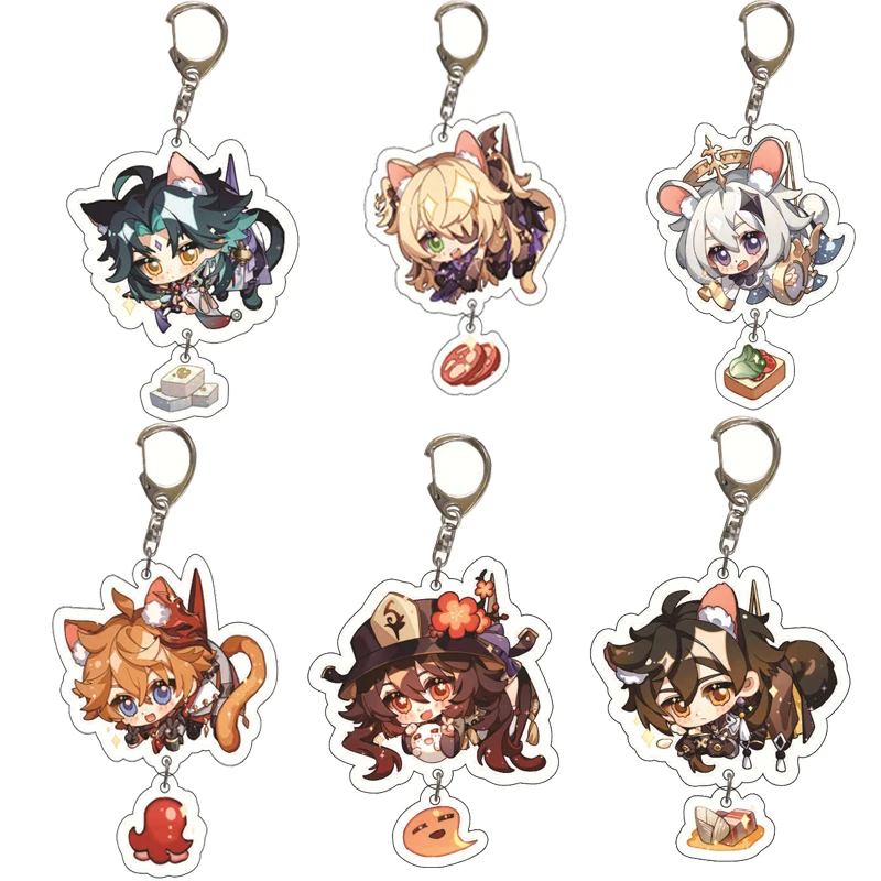 Аниме genshin impact брелок zhongli xiao mona barbara, янтарный акриловый брелок, брелок в виде тартаглии klee keqing для женщин и мужчин