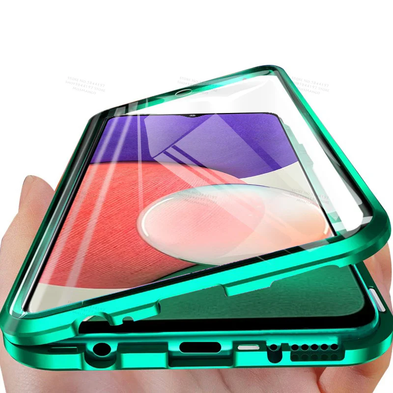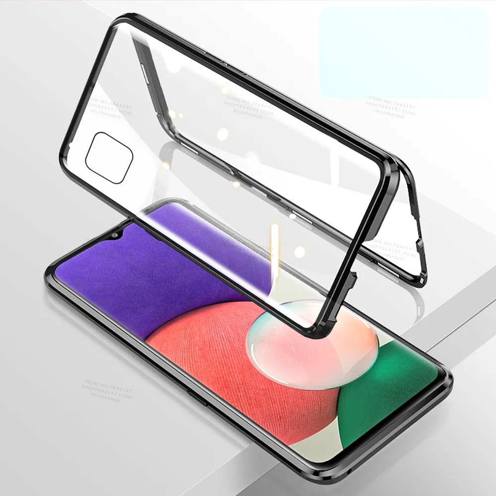 Магнитный металлический чехол для Samsung Galaxy A22 4G 6,4 дюйма, двухсторонний стеклянный чехол для телефона samsung samsun galax a 22 22a
