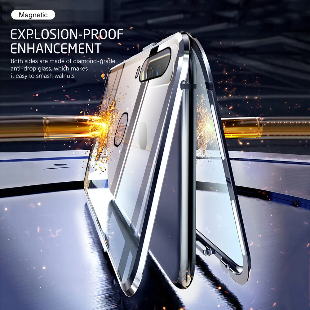Металлический магнитный двухсторонний стеклянный защитный чехол на ...