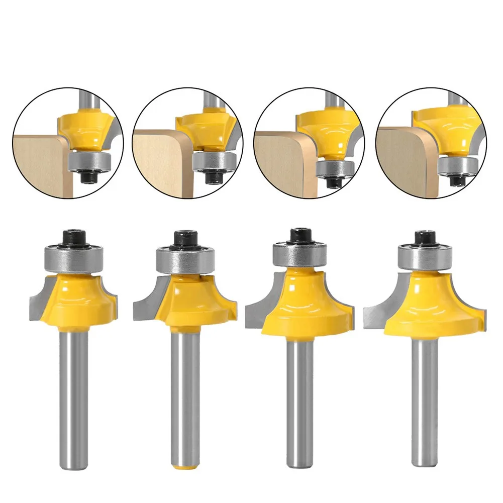 Угловое круглое сверло с хвостовиком 6 мм, фреза с подшипником, фреза для работ по дереву, карбид R3.17mm, R4.76mm, R6.35mm, R7.96