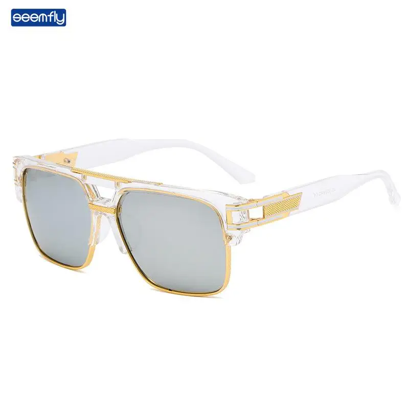 Солнцезащитные очки Seemfly для мужчин и женщин, металлические брендовые дизайнерские солнечные очки оверсайз в стиле ретро, с двойным лучом