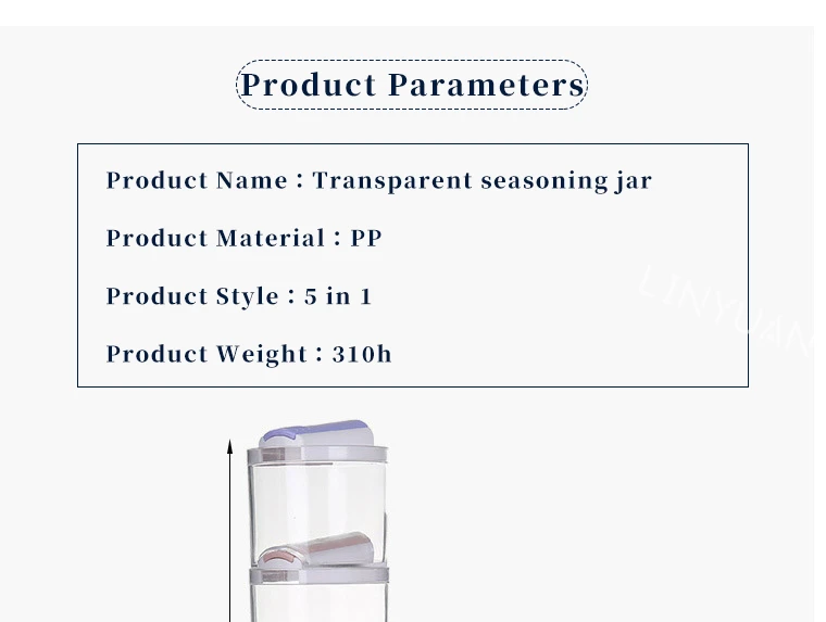 ★Технические характеристики 1-Название продукта: Кухня Стекируемые для баночек со 2-Размеры: 7*7,5 см-одиночный 3-Материал: PP 4-Цвет: 5 шт. в упаковке
