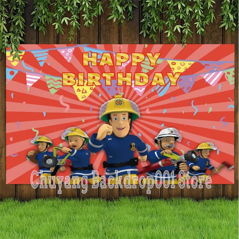 Фон для фотосъемки с изображением персонажей мультфильмов пожарного...