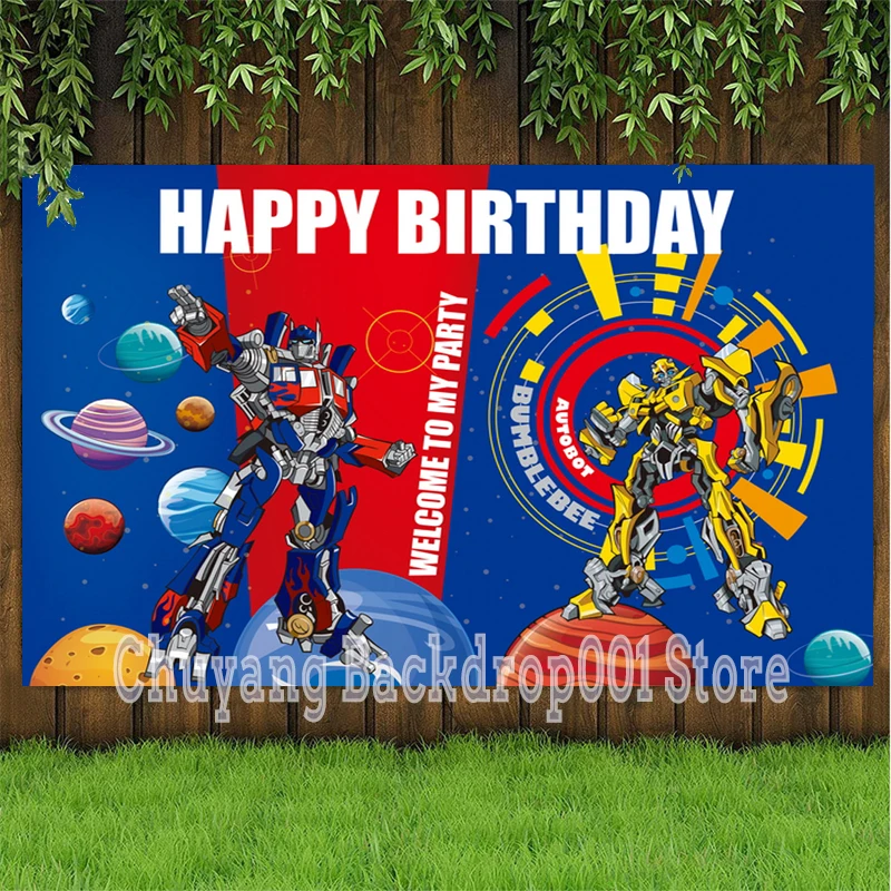 День рождения трансформатор мультфильм фон Optimus Вселенная планеты синие красные дети праздник вечевечерние стол фон фото