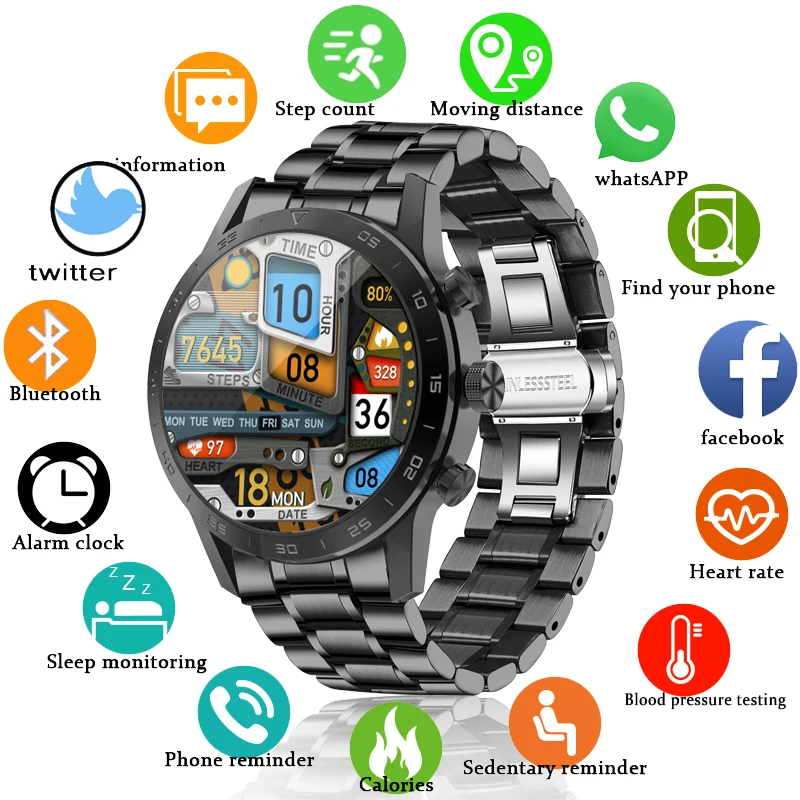 Lige 2021, полностью умные часы с сенсорным экраном, для мужчин, пульсометр, кровяное давление, фитнес-трекер, часы, новый стальной браслет, циферблат, вызов, умные часы