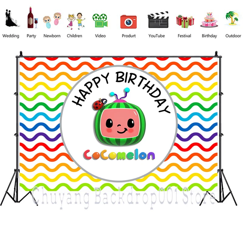 Фон для фотосъемки детей с изображением мультяшных кокомеров на 1-й день рождения детский праздник баннер для фотосъемки с изображением шара дыни Фотофон