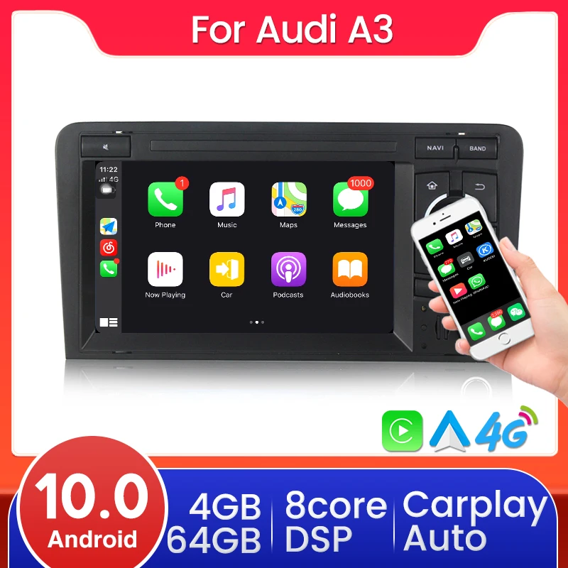 Автомагнитола 2DIN Android 10,0 для Audi A3 8p, подходит для 2003-2013, Авторадио, аудио, gps-навигация, поддержка камеры управления рулевым колесом