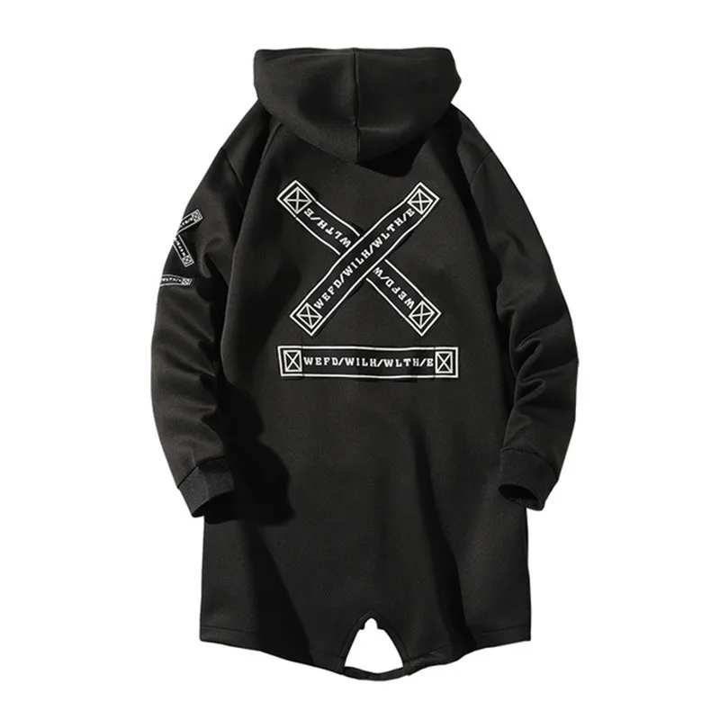Куртка мужская длинная с капюшоном, уличная одежда в стиле хип-хоп,...