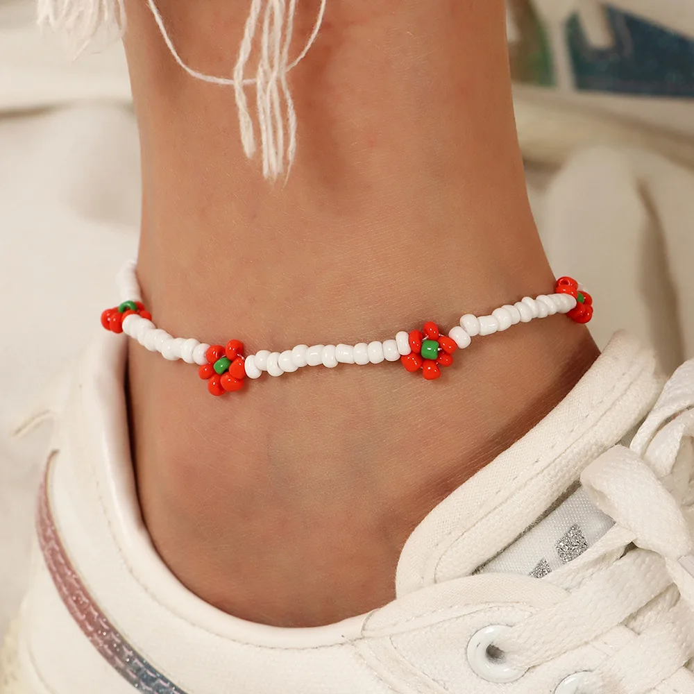 Женский браслет на лодыжку, с цветными бусинами