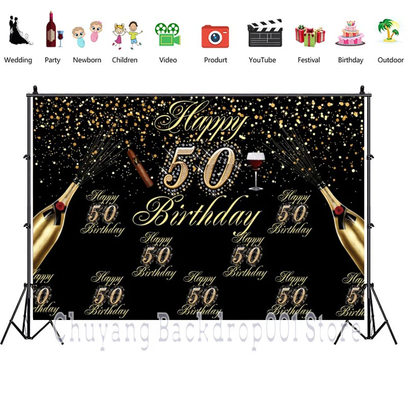 Фон для фотосъемки с изображением золотых и шампанских цветов для празднования дня рождения