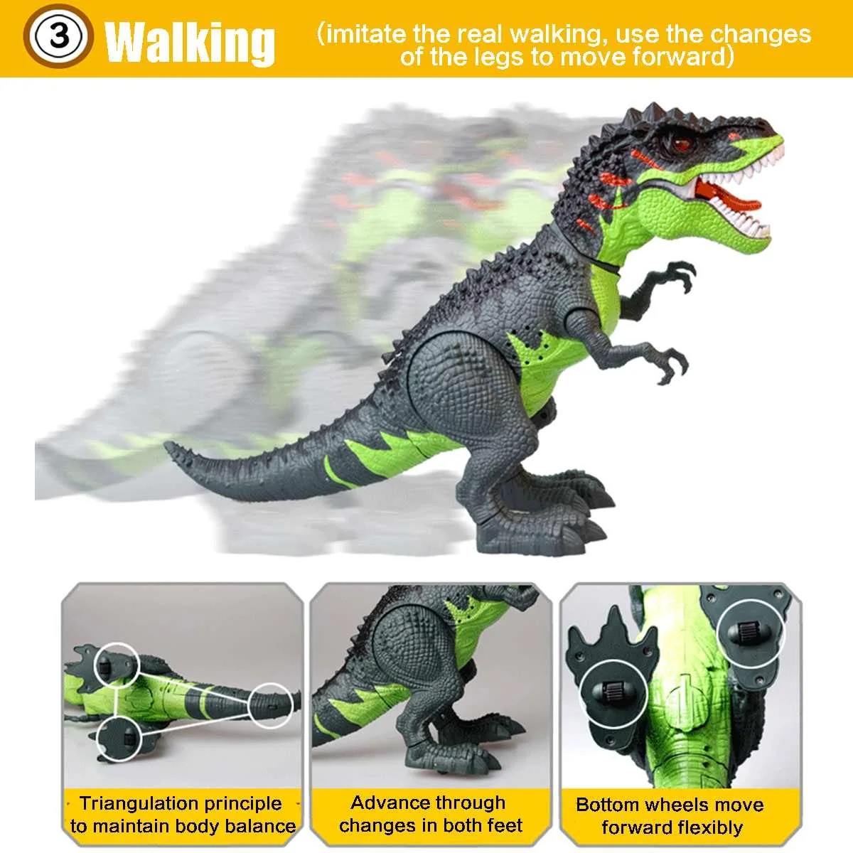 Название: зеленый динозавр, игрушечный двигатель, электрический тираннозавр, Рекс, спрей, плач, яйцо лампыМодель: A68193Описание товараТип: тираннозавр рексМатериал: пластикЦвет: зеленыйРазмер: 43*13 ** 28Батарея: 3x1,5 в AA (не входит в комплект)Особенности:●Динозавр, который отложит яйцо, включит переключатель, динозавр отложит яйцо с криком●Динозавр, который будет распылять, после добавления водопроводной воды, откройте переключатель, чтобы распылить красное пламя● Будет ходить, имитировать настоящую ходьбу, использовать изменения ног, чтобы двигаться вперед● Проекция, проецирующая узор динозавра через шею● Глаза, язык будет сиять, глаза будут более реалистичными● Высококачественные динамики, имитирующие динозавров●Безопасный, нетоксичный, без запаха●МногофункциональныйПрименение: Подарочные игрушкиКак использовать (инструкция)Шаги установки1. Открутите боковые винты хвоста2. Откройте и установите 3 батареи в слот (без батареи)3. Крышка и замок с помощью винтов4. Соедините часть тела с хвостом5. Включение и выключение сзади6. Положите динозавра на землю, чтобы ходитьПосылка:● 1 игрушка динозаврПримечание:Хвост отделен от тела. После получения товара необходимо соединить хвост с корпусом.