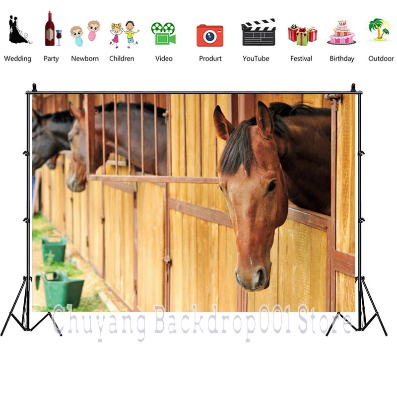 Фон для студийной фотосъемки с изображением деревянной лошади и Коньков