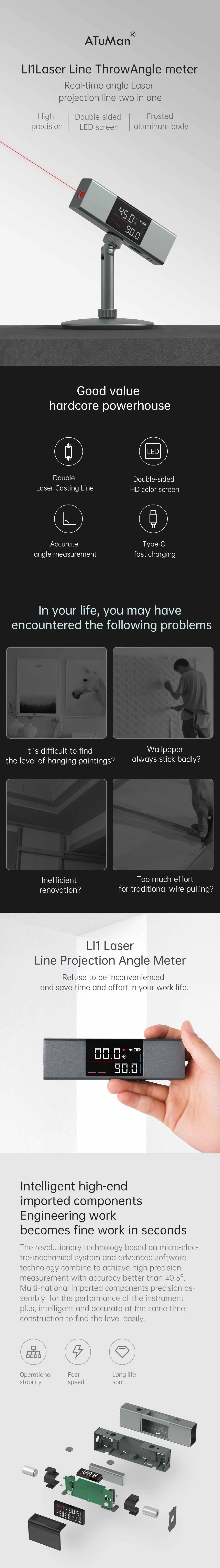 Двойной лазерный транспортир DUKA LI1 2 в 1, перезаряжаемый угловой линейный инструмент с поворотом на 360 , дальномер с дополнительным кронштейном 14