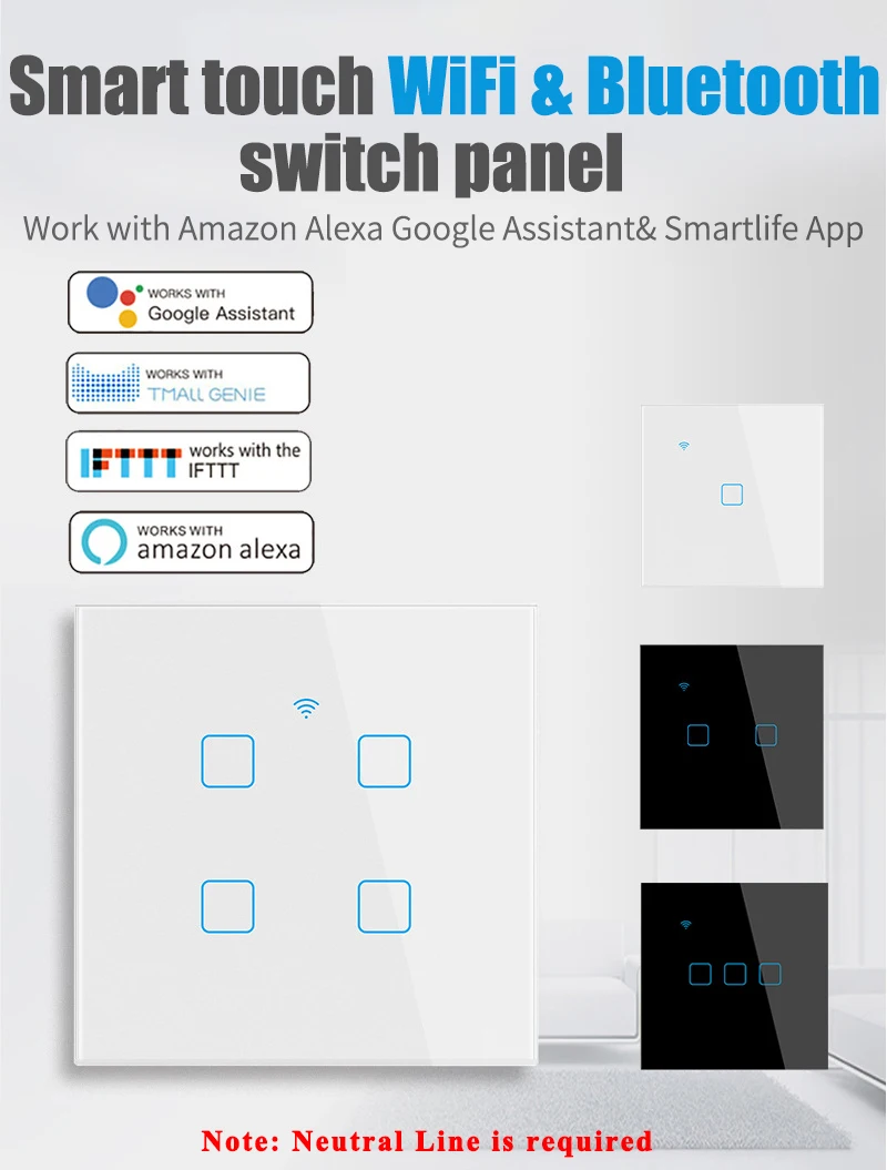 【Поддержка голосового контроллера 】 переключатель совместим с Alexa и Google Home Assistant, что позволяет использовать Голосовое управление smart switch для включения/выключения.