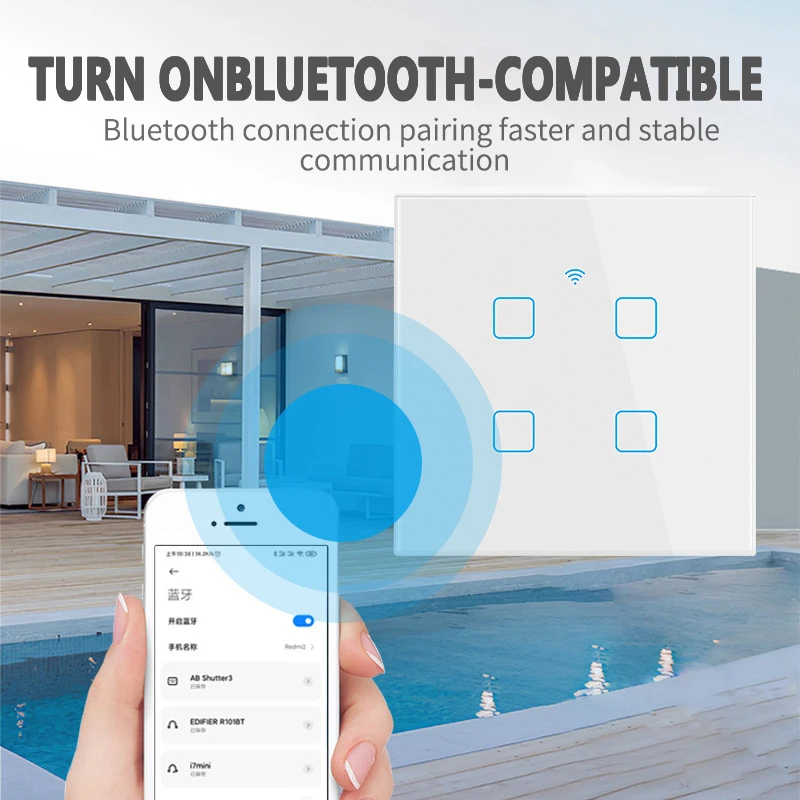 Сенсорный экран из закаленного стекла этого Смарт-переключателя чувствителен к касанию управления, высококачественный прочный стеклянный материал обеспечивает до 20 миллионов сенсорных фигур через наше тщательное тестирование. Водонепроницаемый, влагостойкий, устойчив к царапинам.