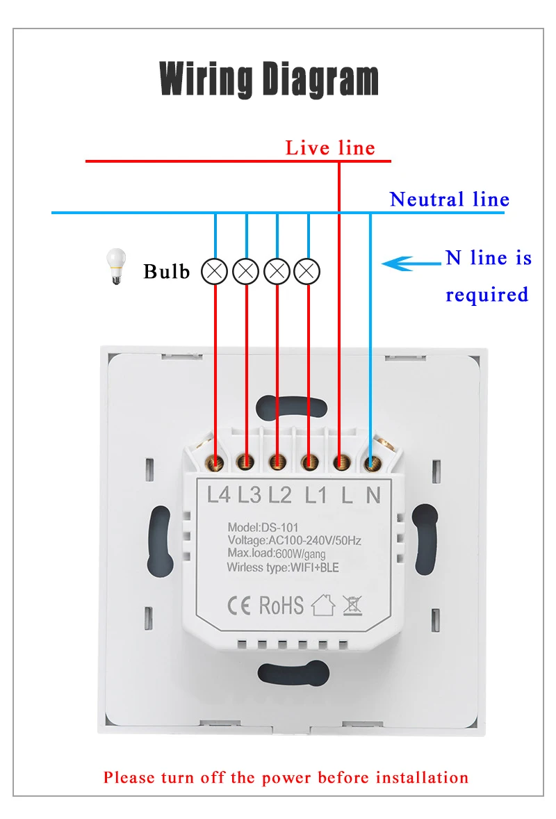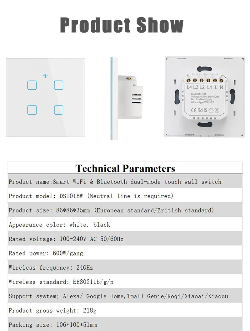 Модель продукта: DS101BW (требуется нейтральная линия)