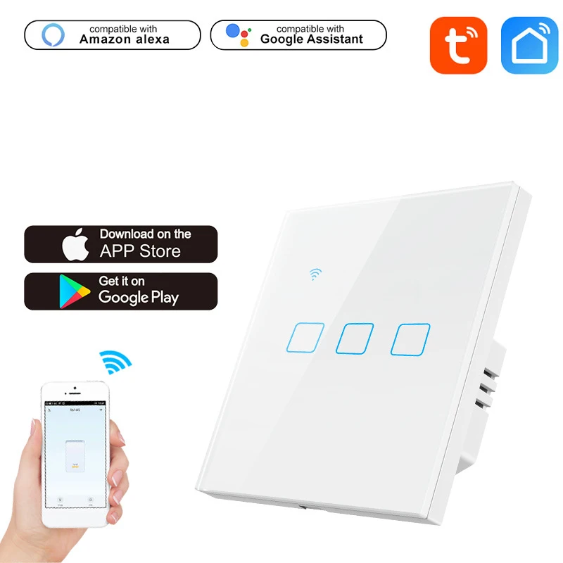 TUYA WiFi умный сенсорный переключатель 100-240 В домашняя настенная кнопка для Alexa и Google Home помощник ЕС Стандартный сенсорный выключатель 1/2/3/4 Gang