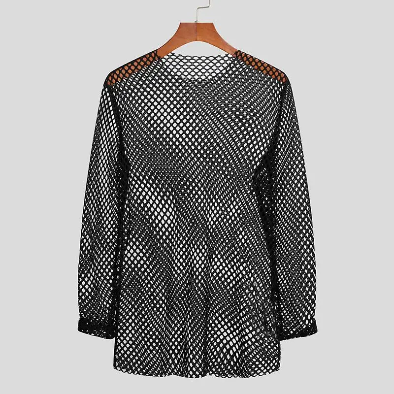 Футболка мужская сетчатая Прозрачная с круглым вырезом и длинным рукавом