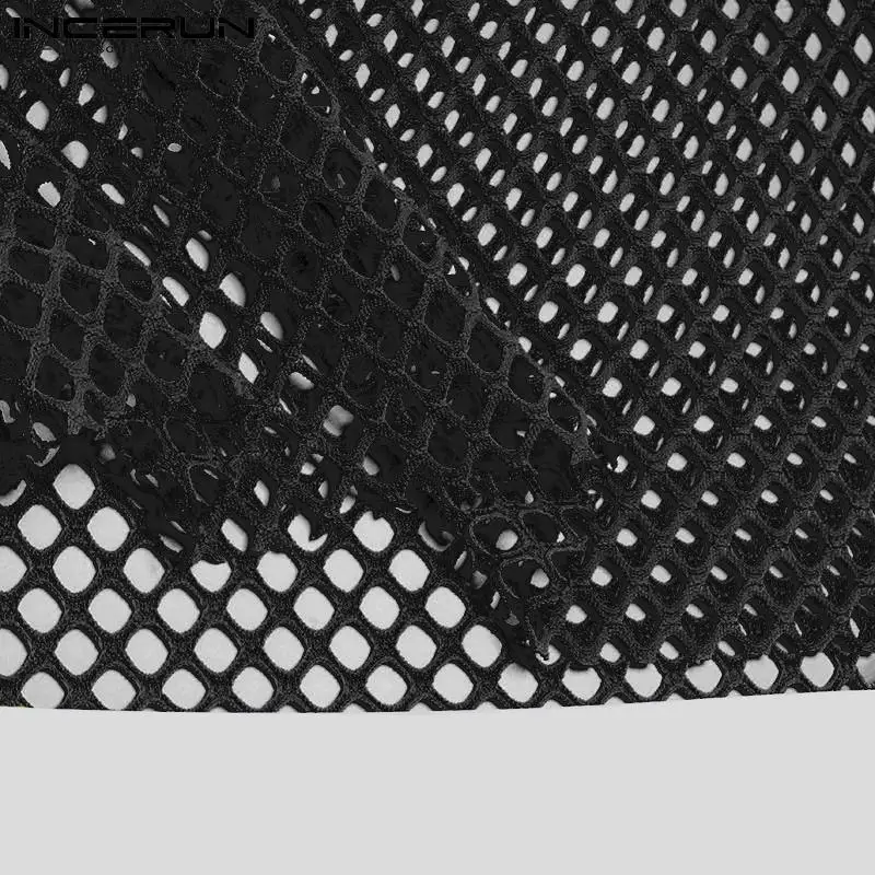 INCERUN 2022 Мужская рубашка, кружевная сетчатая прозрачная рубашка...