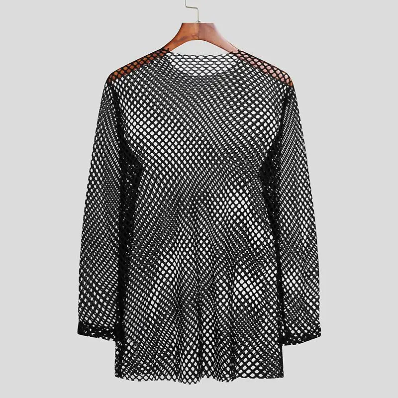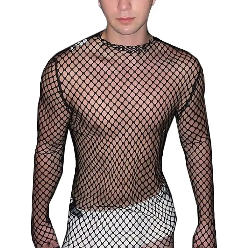 Футболка мужская сетчатая Прозрачная с круглым вырезом и длинным рукавом, 2021
