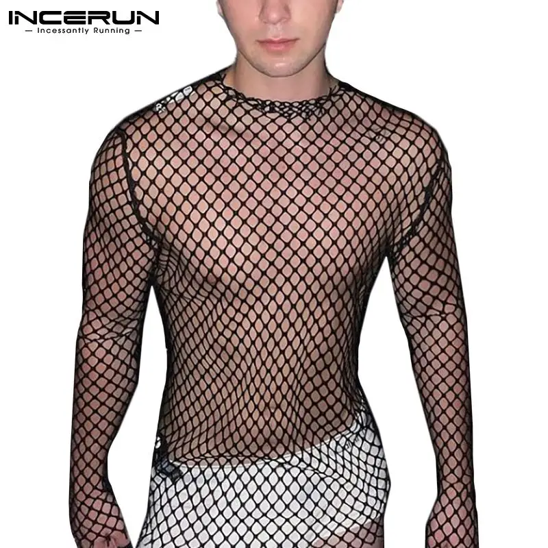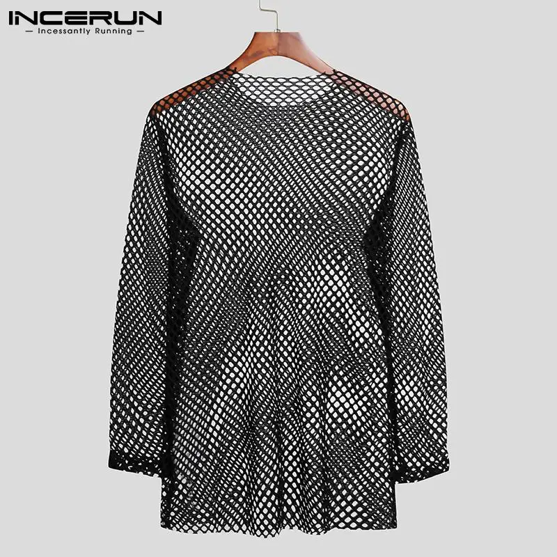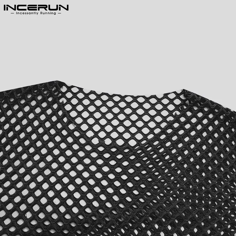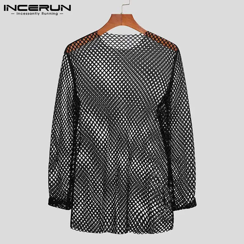 INCERUN 2022 Мужская рубашка, кружевная сетчатая прозрачная рубашка...
