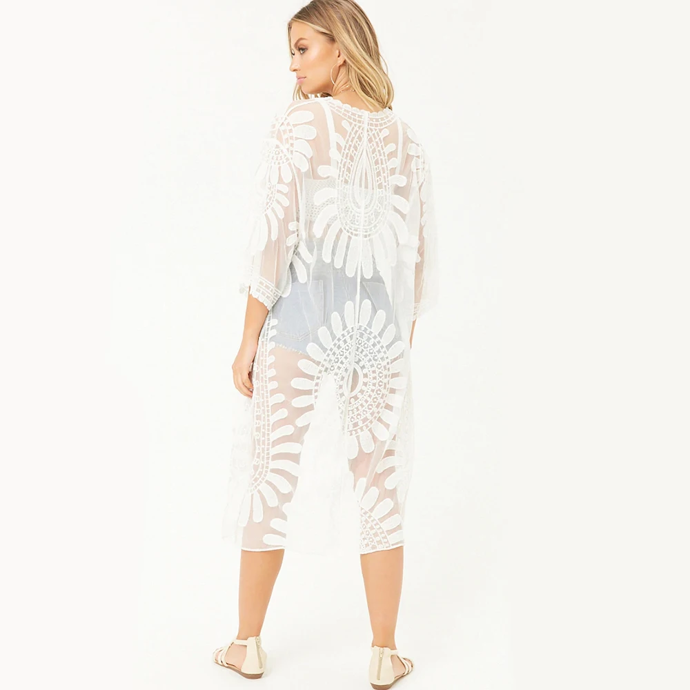 Женская кружевная Пляжная накидка, Свободный кардиган, кимоно, блуз...