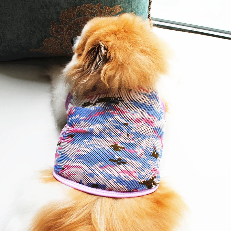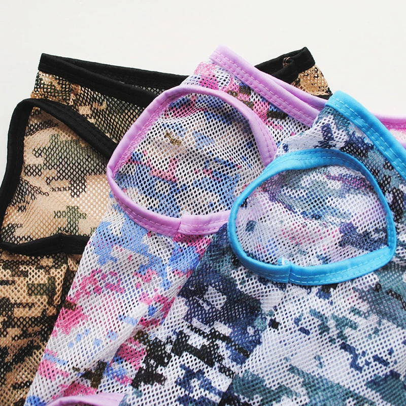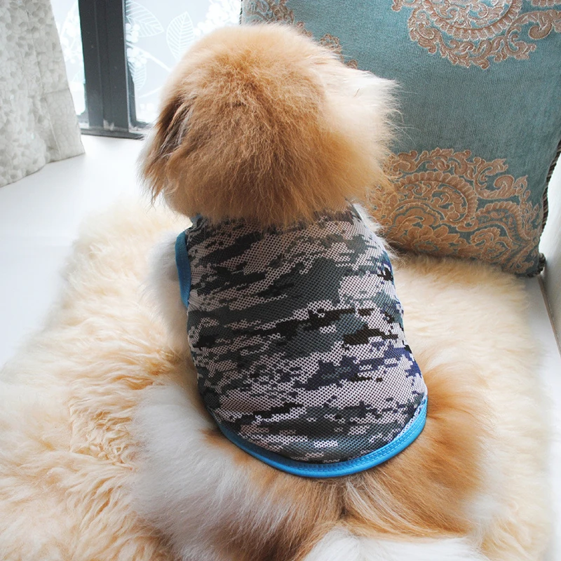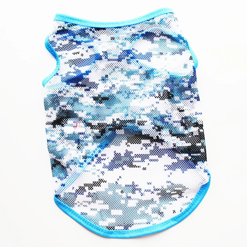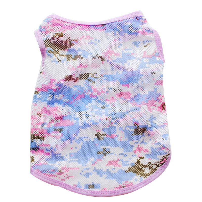 Камуфляжная сетчатая Одежда для питомцев с принтом, Солнцезащитный жилет, крутая дышащая футболка для собак, жилеты для маленьких и средних собак, летняя одежда для щенков
