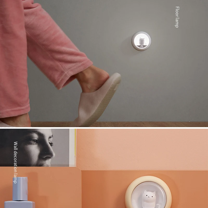 Симпатичный ночник, индукционный светильник, s, настенный светильник, домашняя кошка, спальня, атмосферная лампа, USB-зарядка, настенные подвесные светильники